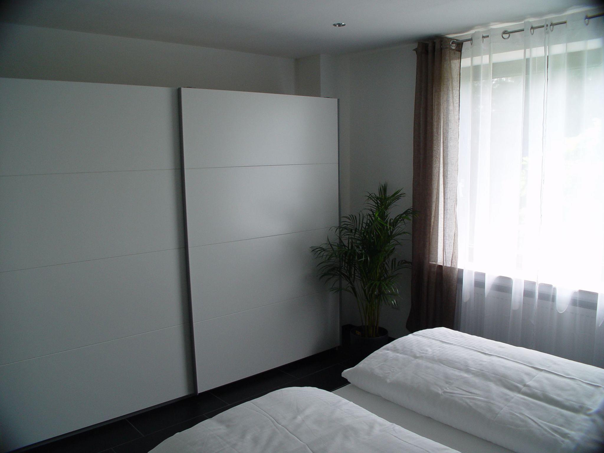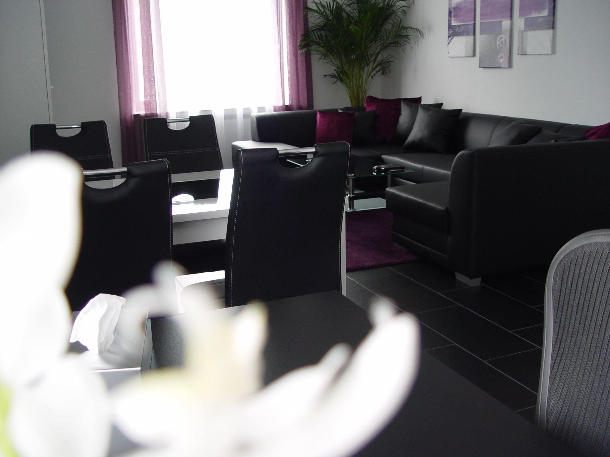 Inside, the flat offers a spacious living ambience with 2 rooms, kitchen and bathroom (2 bedrooms) for two people plus a maximum of two additional guests. The approx. 30 sqm living room, with an approx. 6 sqm discreet open office/work area, is equipped with a 50? flat screen, SAT TV, a BluRay 3D player and an LED system that allows you to set the colour of your choice. A cosy couch, which can be converted into a large bed if required, and a 900 x 1,400 mm dining table with comfortable swivel chairs complete the offer. The fully equipped kitchen with approx. 9 square metres offers standard elements such as a fridge, oven and microwave as well as a dishwasher. A pantry directly accessible from the kitchen offers additional storage space.