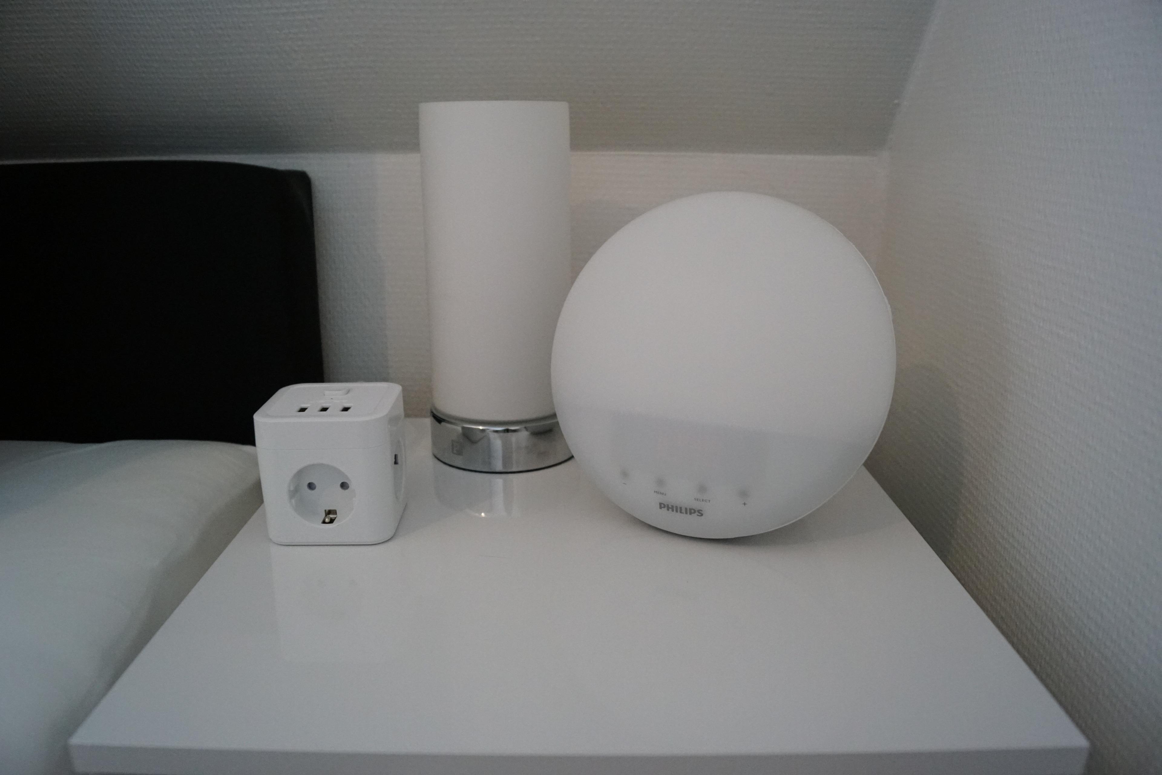Auf jeder Bettseite werden Sie einen Nachttisch vorfinden, mit einer dreistufig, dimmbaren LED Lampe, die Sie bequem über die Touch-Funktion bedienen können.
