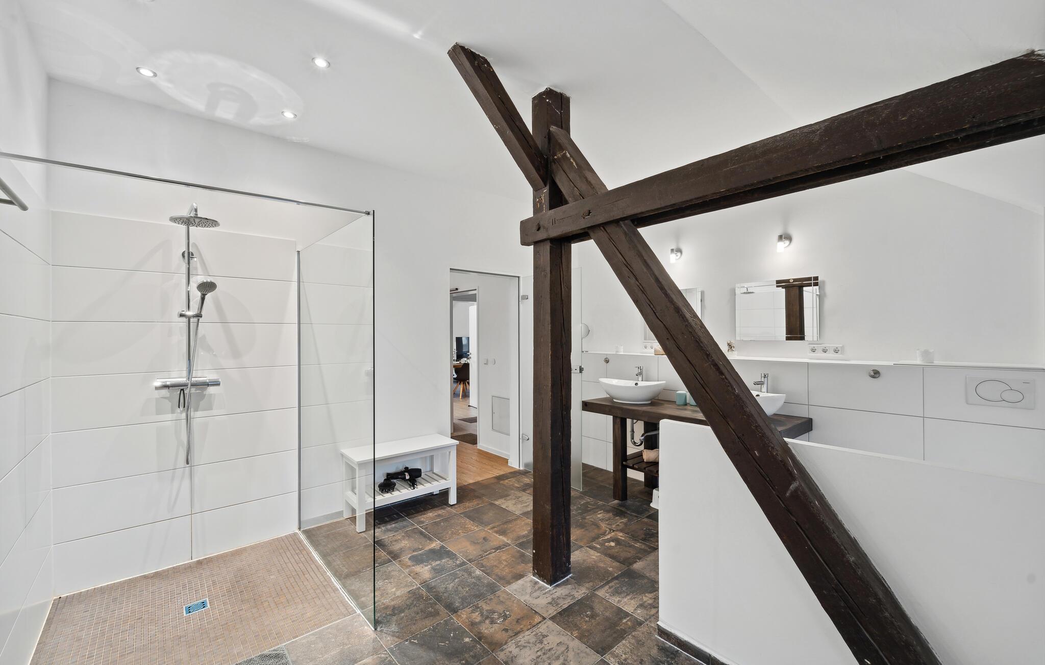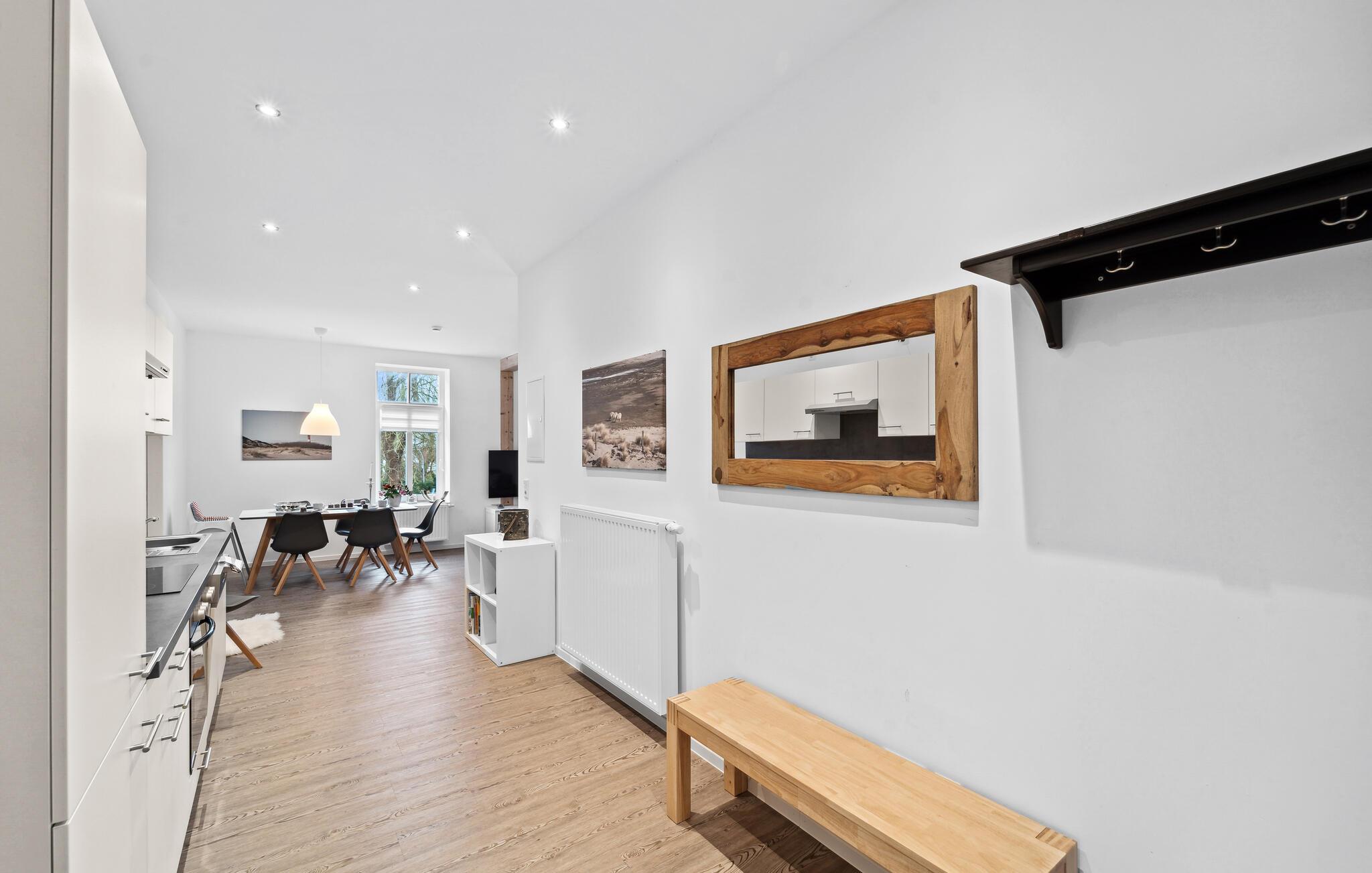 Gled deg til ferien i denne vakre ferieleiligheten, som ligger på en gård sammen med en annen ferieleilighet. Kombinasjonen av bindingsverk, høye vinduer og moderne innredning inviterer deg til å nyte ferien til det fulle. De lyse rommene lar ikke noe tilbake å ønske, og lover både store og små en ideell ferie for matlaging, spising, lek og avslapning. Du kan også glede deg til terrassen ved siden av huset og den vakre felleshagen, hvor du kan sole deg og se barna løpe rundt.