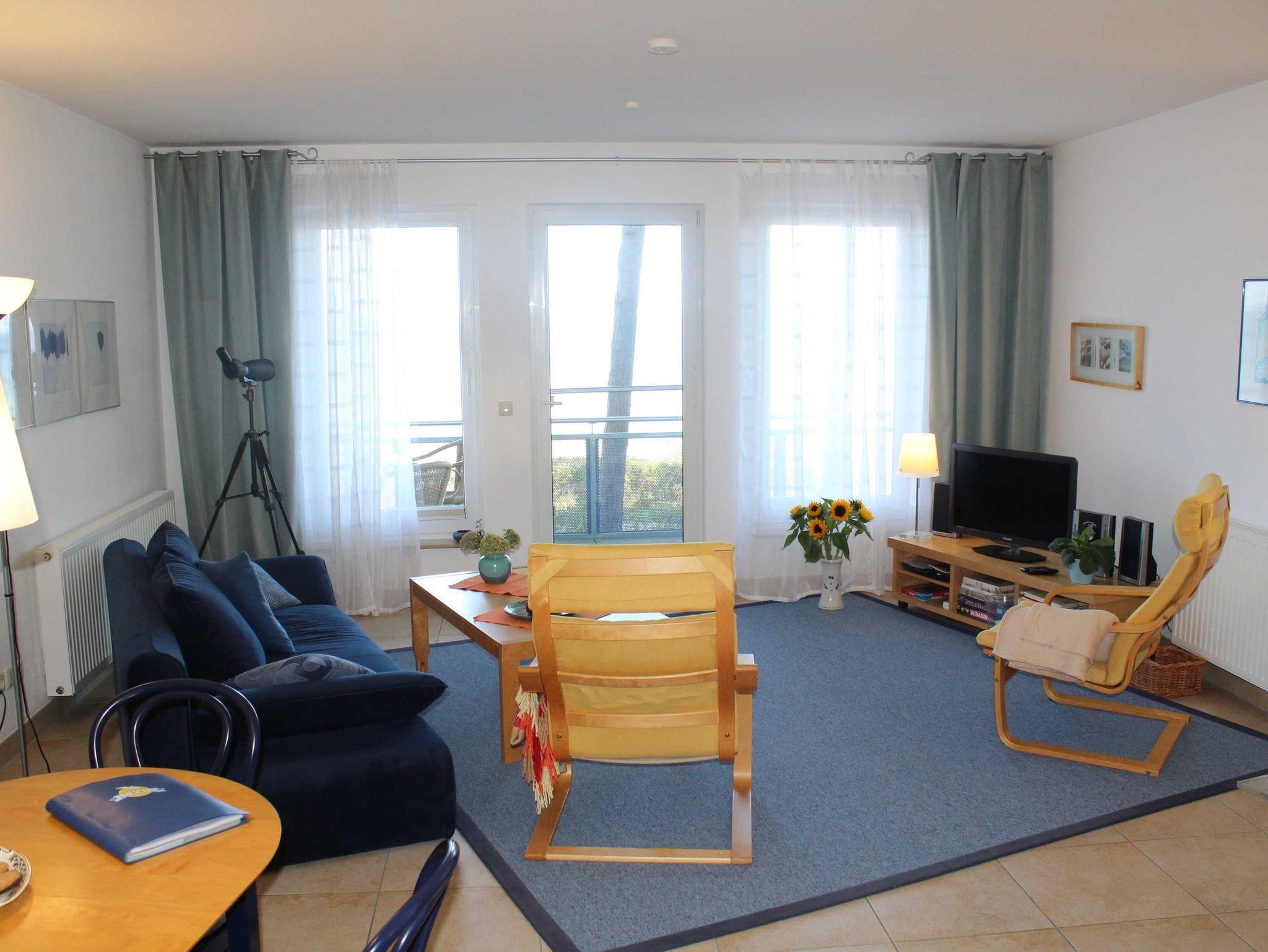 Ferienwohnung mit einem Wohn-Schlafraum (Schlafcouch 1,40m breit), einem Schlafraum (Doppelbett 1,60m breit), Küche und einem Badezimmer mit Badewanne und WC. Bettwäsche und Handtücher vorhanden. Ausgestattet mit TV, Radio, Kabel/Sat, Sitzgruppe, Kinderbett, Haarfön und Balkon. Ein Aufzug befindet sich im Haus. Behindertenfreundlich!. Heizung, Wasser, Strom inclusive. Kurtaxe nach gültiger Satzung ist von Mai - September vor Ort zu zahlen. Bettwäsche und Handtücher sind im Mietpreis enthalten. Babyausstattung wird nach Vereinbarung kostenfrei gestellt. Haustiere nicht erlaubt. Ein Strandkorb ist für unsere Gäste vorhanden.Parkplatz in der Tiefgarage. 2 Fahrräder sind vorhanden und können kostenfrei genutzt werden.. Anreise ab 15.00 Uhr Abreise bis 11.00 Uhr