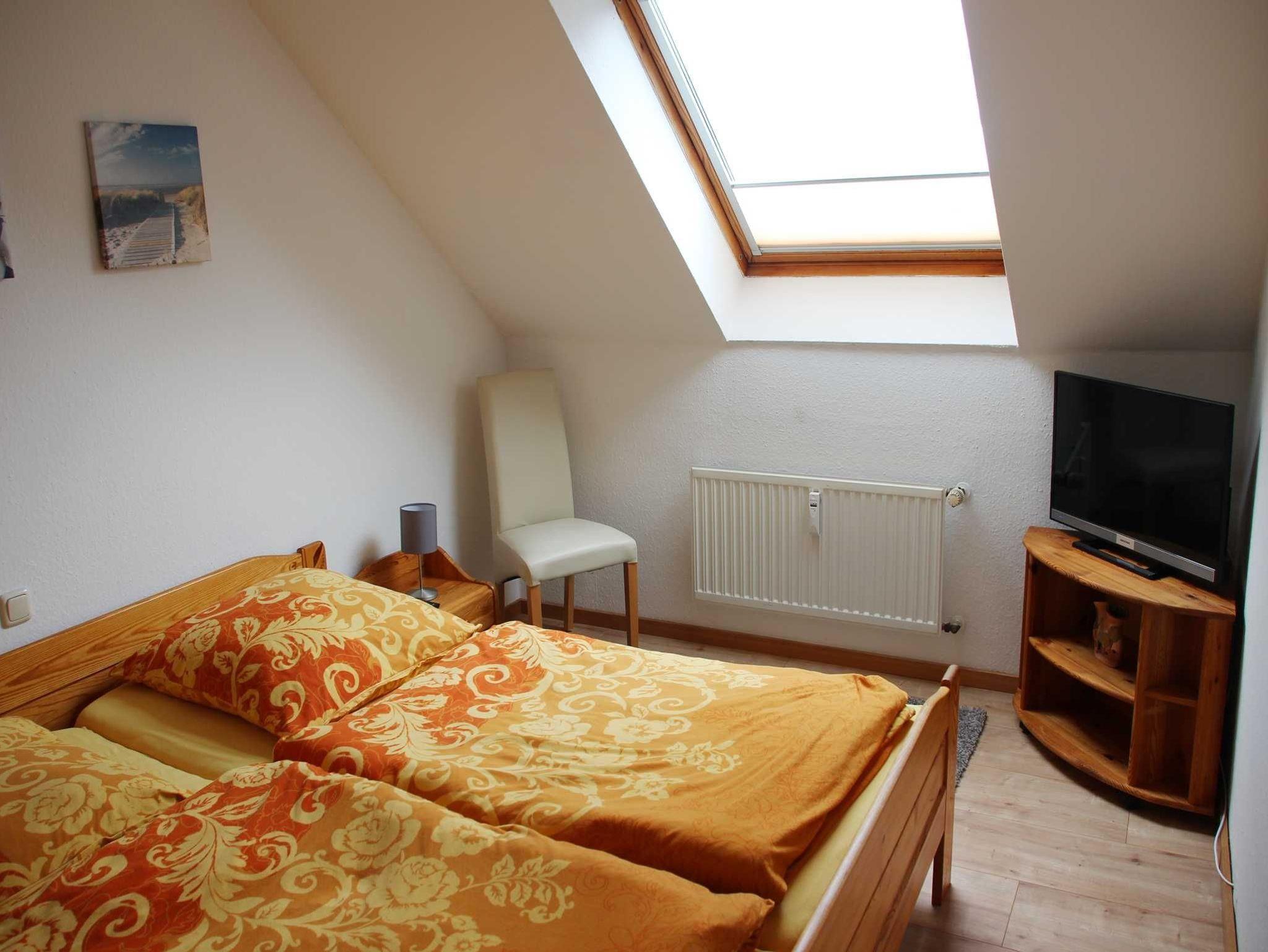 • Doppelbett 1,80 x 2,00 m, 1 Kleiderschrank, Flachbild-TV, Kinderbett + Hochstuhl