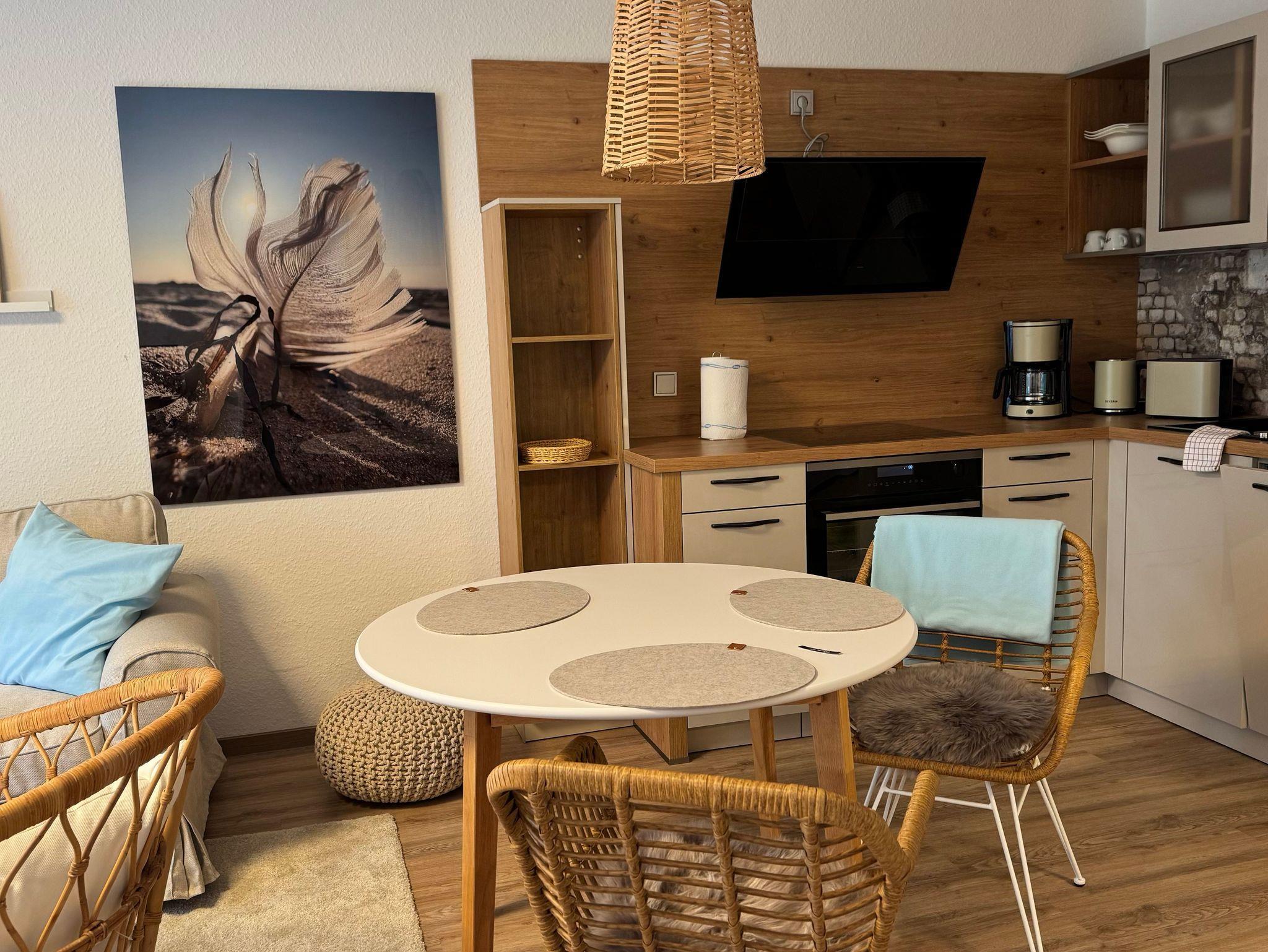 Die Suite Blaumuschel-Sprotte 15 mit Süd-Balkon liegt direckt am flach abfallenden Sandstrand von Lubmin. Es erwartet Dich eine Wohnküche mit Geschirrspüler und Ceran Kochfeld, Schlafraum mit hochwertigem King size Bett 2,00 x 2,00 m der Firma BettCo, Bad mit Dusche und ein Südbalkon mit komfortabelen Terassenmöbeln.
