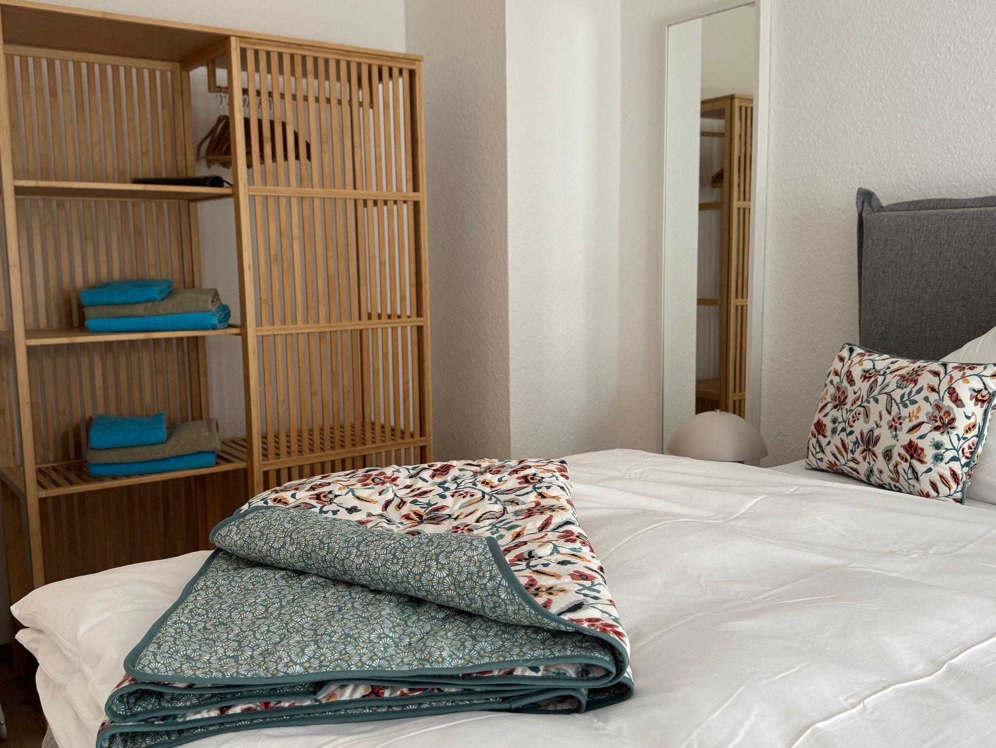 Bad mit Dusche, Fön, Handtücher, Bettwäsche,