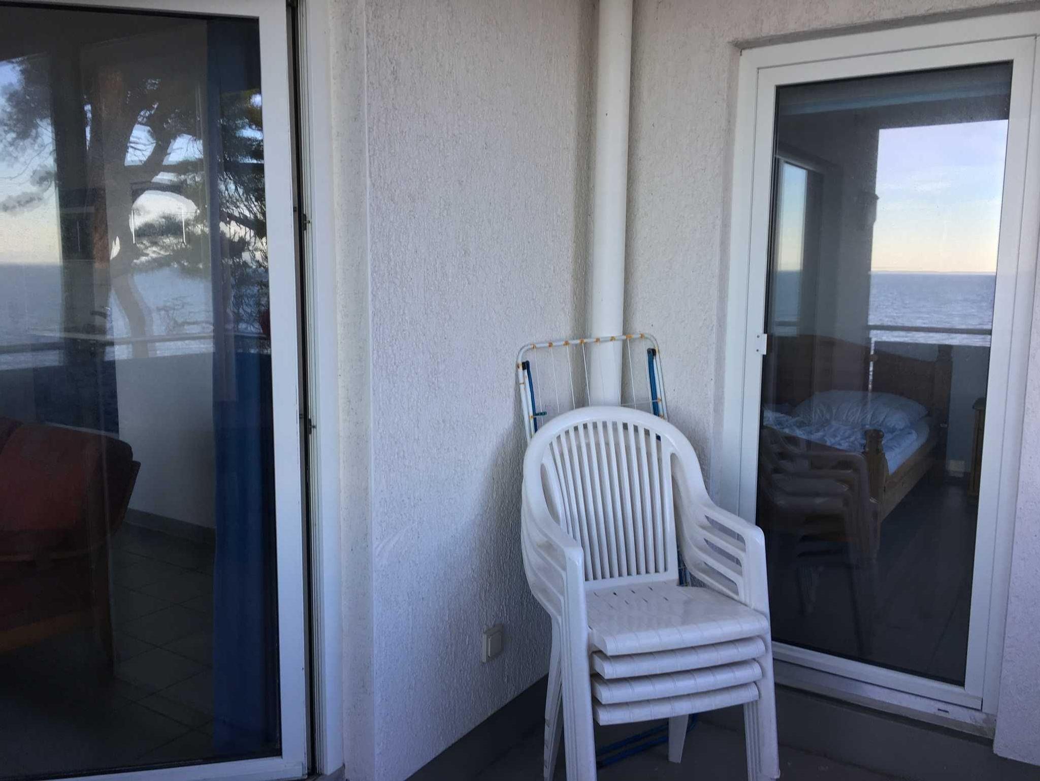 Die im ersten Obergeschoss an der Nord- und Westseite des Hauses gelegene, durch große Glasfenster freie Blicke auf das Meer bietende, ca. 70 qm große Wohnung Nr. 35 verfügt über Bad/WC mit Dusche und Waschmaschine, zwei Schlafzimmer sowie einen geräumigen Wohnraum mit Sitzgruppe, Essplatz für bis zu 6 Personen und einer Küchenzeile (4 Kochplatten, Backofen, Mikrowelle, Kühlschrank, Geschirrspüler, Kaffeemaschine, Toaster). Der größere Wohnraum sowie das eine Schlafzimmer haben Zugang zum südwestlich gelegenen Balkon und sind oftmals Schauplatz schöner Sonnenuntergänge.