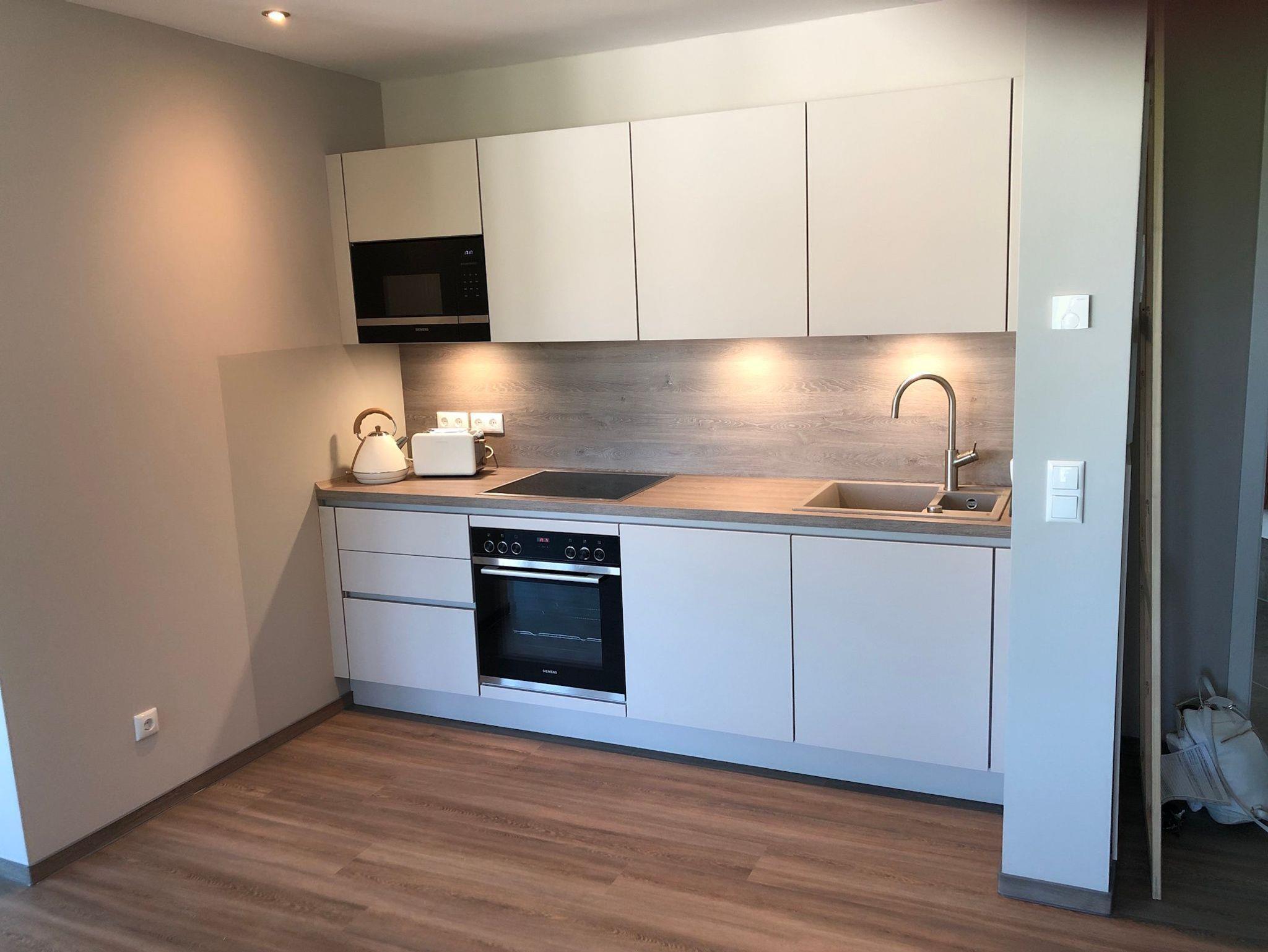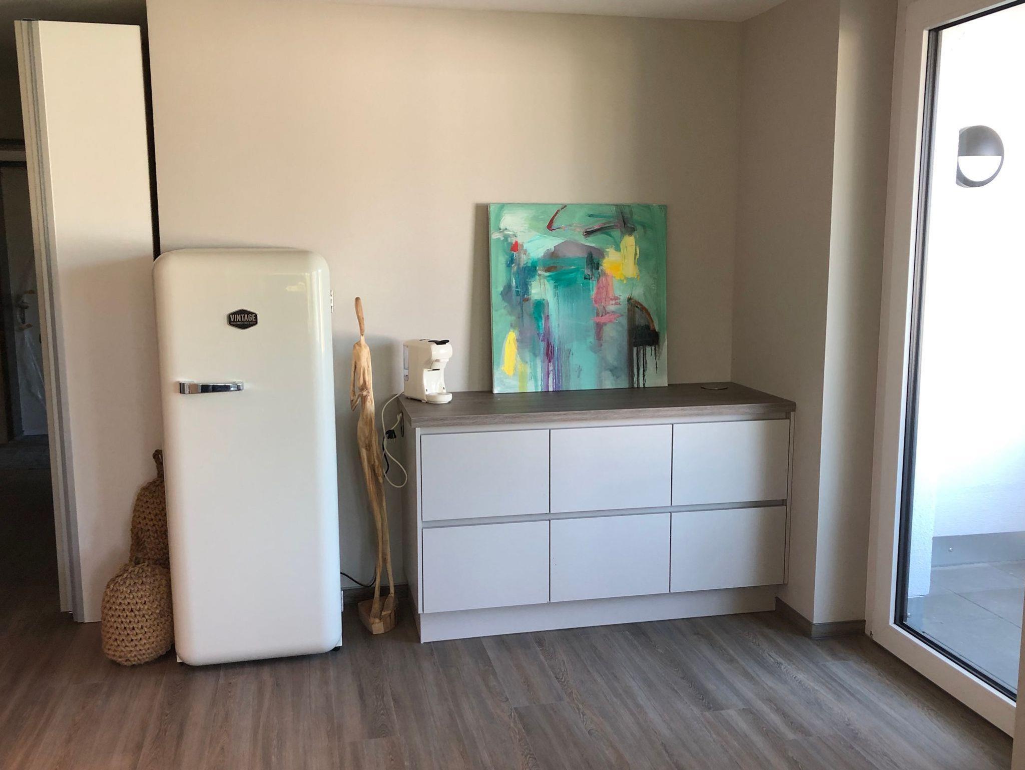 Offene Wohnküche, Einbauküche mit Kühlschrank/Gefrierfach, Herd mit Ceran- Kochfeld und Backofen, Spülmaschine, Mikrowelle, Kapsel- Kaffeemaschine, Wasserkocher, Toaster