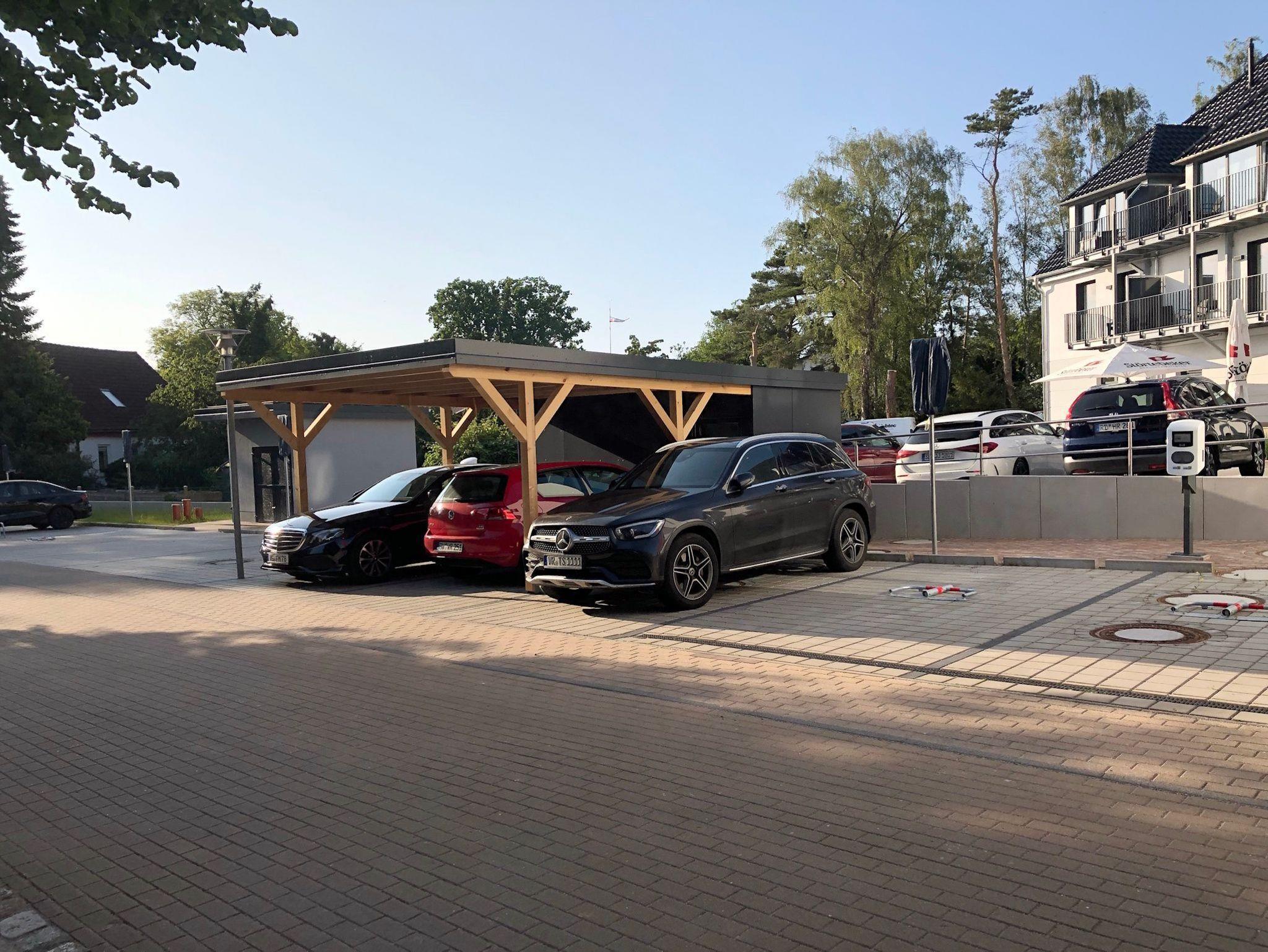 Ein zugehöriger kostenloser PKW- Stellplatz befindet sich direkt neben dem Gebäude. Dieser Stellplatz ist mit dem Namen der Suite markiert. Er ist leicht zu finden, weil genau daneben eine elektrische Ladesäule steht.