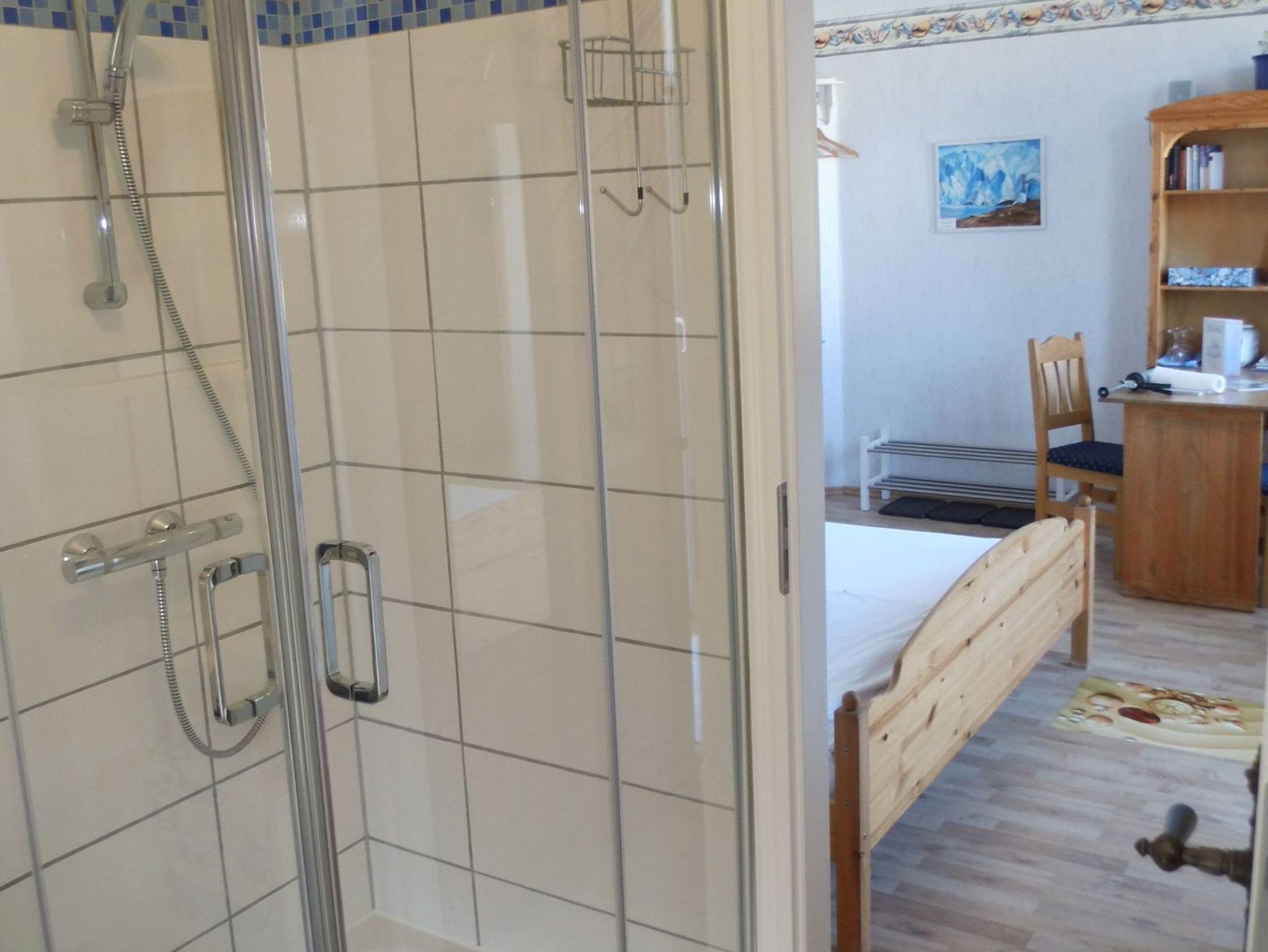 Die komfortable Ferienwohnung (54qm), bietet Platz für 5 Erwachsene, aufgeteilt in zwei Schlafzimmer, ein Esszimmer, Küche und Badezimmer. Der Wohn-/Schlafraum ist eingerichtet mit einem Doppelbett (200/180) mit verstellbaren Lattenrosten am Kopf - & Fußenden), einer Sitzecke, TV, Radiowecker, Musikanlage und einer Garderobe. Den zweiten Schlafraum erreicht man über eine Raumspartreppe in das Dachgeschoss. Hier stehen 2 Stapelbetten (200cm x 90cm), diese zu 3 oder sogar 4 Betten umgestapelt werden können.