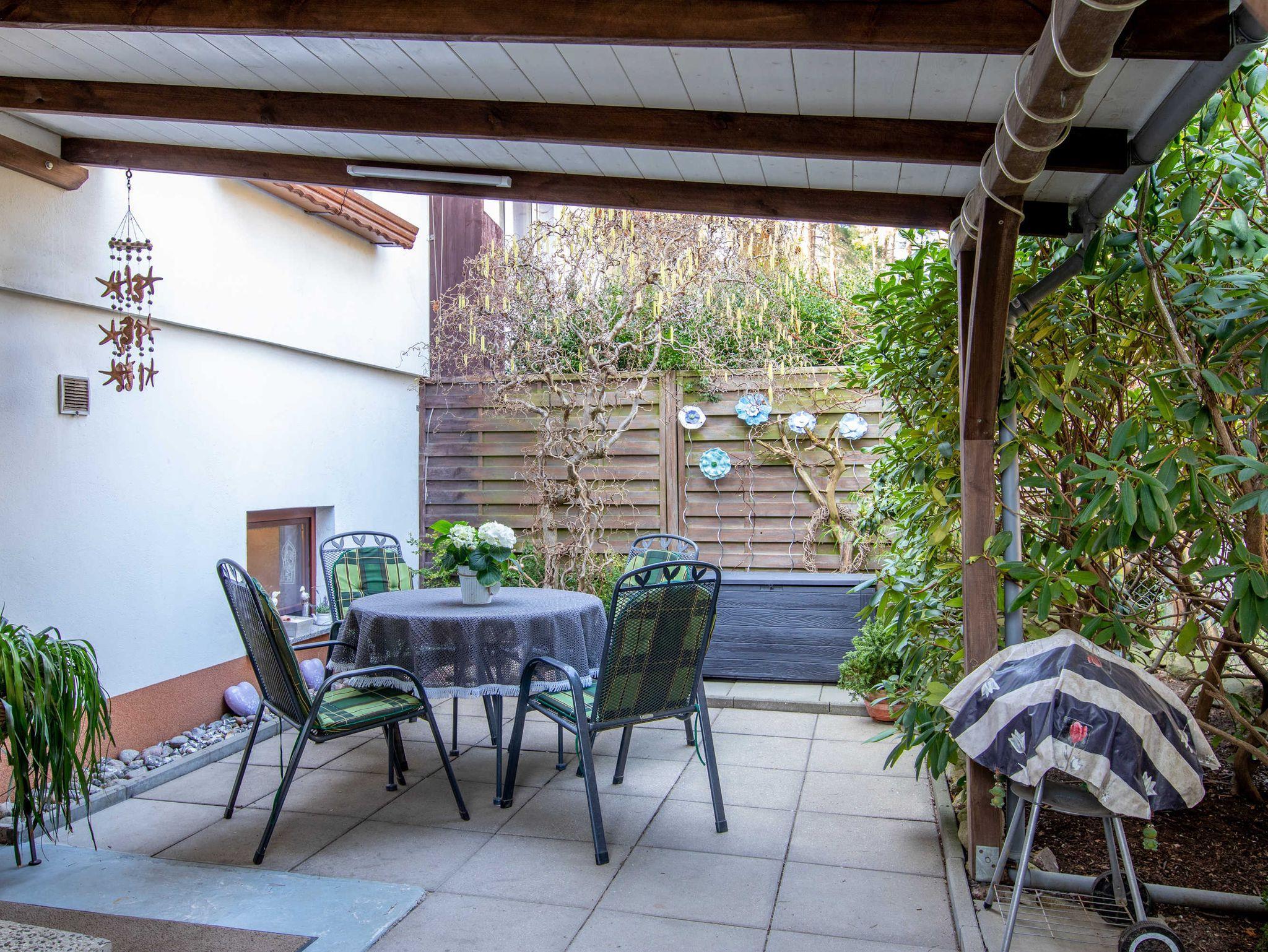 in Ortsrandlage direkt am Küstenwald. Zum Strand sind es nur 400 Meter. Die 2-Zimmer-Wohnung verfügt über eine separate Küche mit Sitzecke und Esstisch für 3 Personen, ein Schlafzimmer mit zwei Schlafmöglichkeiten (90x200, getrennt stellbar), ein Wohnzimmer mit Sofa, Schlafsofa (140x200), sowie ein Bad mit Dusche und WC. Der separate Eingang ist über eine Terrasse mit Gartenmöbeln und Grill erreichbar. Auf dem Grundstuck befindet sich ein PKW-Stellplatz, Fahrräder können ebenfalls untergestellt werden. Da sich auf dem Hof ein unbewachter, nicht umzäunter Teich befindet, können wir Buchungen mit Kindern bis 10 Jahren leider nicht realisieren.