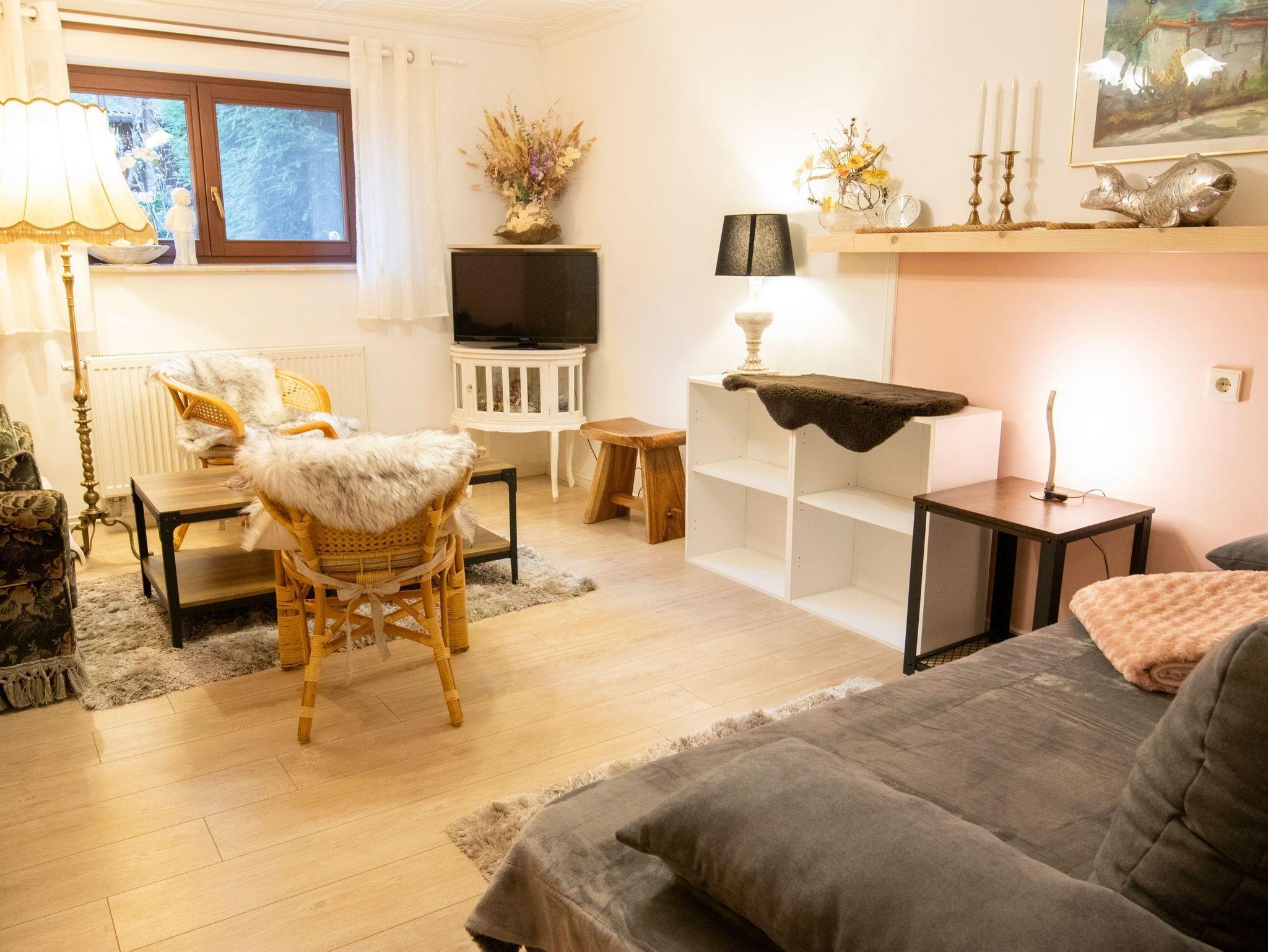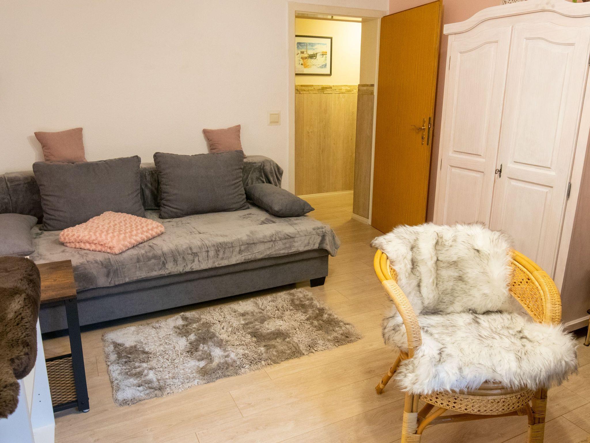 Die freundlich eingerichtete 55 m² große Ferienwohnung Timmy befindet sich im Souterrain einer Doppelhaushälfte,