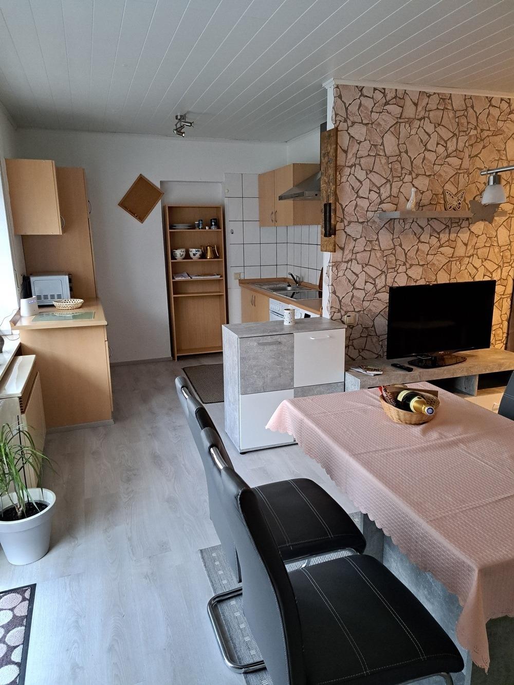 Neu renovierte und geschmackvoll zum Wohlfühlen eingerichtete Zwei-Zimmer-Ferienwohnung,Wohnzimmer mit Küchenzeile und Essbereich, Schlafzimmer ,im Erdgeschoss mit großer Terrasse , sehr ruhig gelegen im Orteilsteil Schöntal direkt am Wald und 150 Meter vom Badeweiher Schöntal entfernt. Schöntal hat keinen Durchgangsverkehr, generell nur 30 kmStd. Erlaubt.