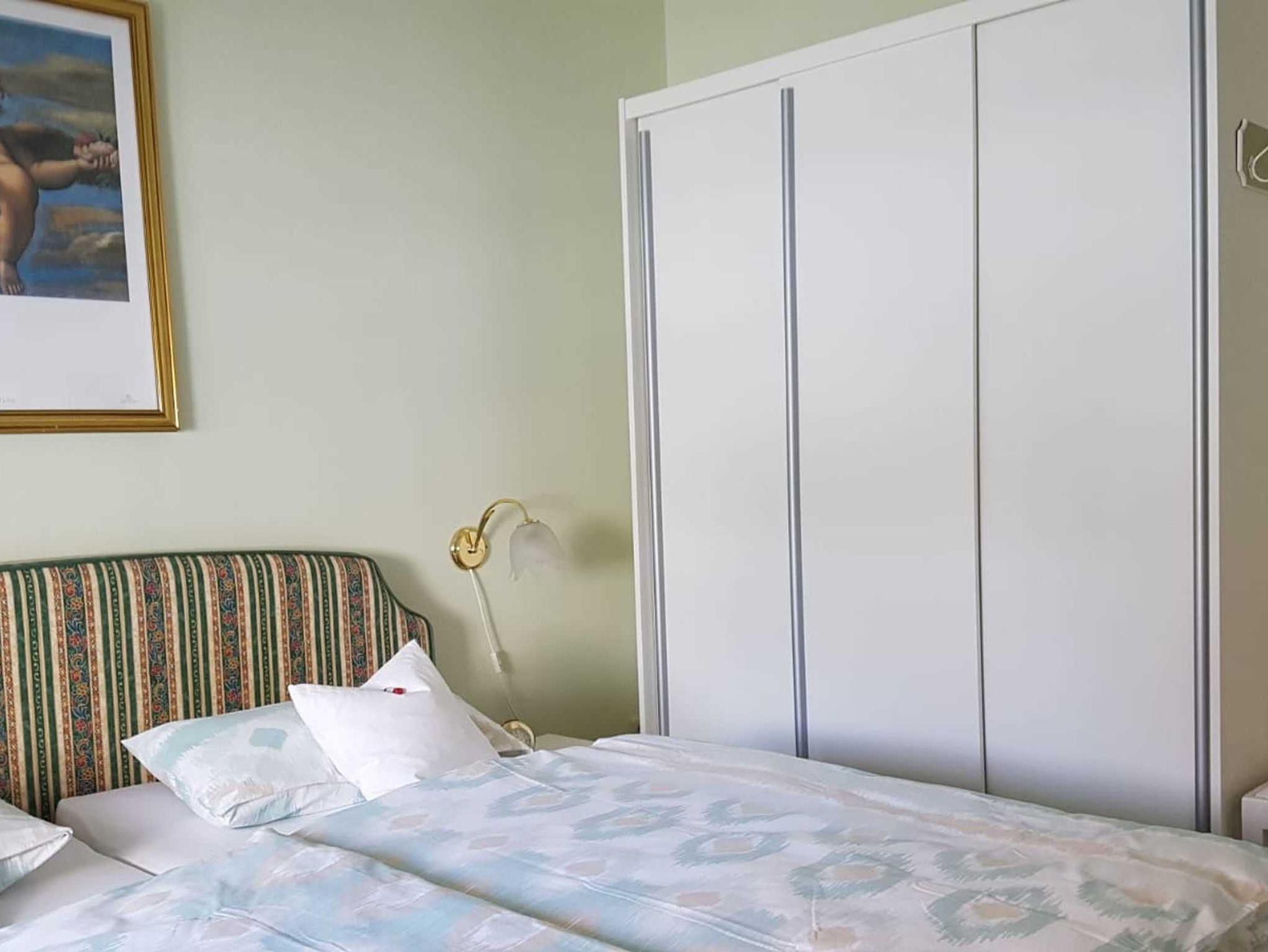 Das Schlafzimmer ist mit einem Doppelbett ausgestattet. Im Wohnzimmer befindet sich eine Schlafcouch für eine Aufbettung für maximal 2 Personen. Eine komplett ausgestattete Küche mit Waschmaschine, Geschirrspüler, Herd, Mikrowelle, Kaffeemaschine und einem Brötchenaufbackofen. Neben der Küche befindet sich eine Kammer, die zum Abstellen der Koffer etc. genutzt werden kann.