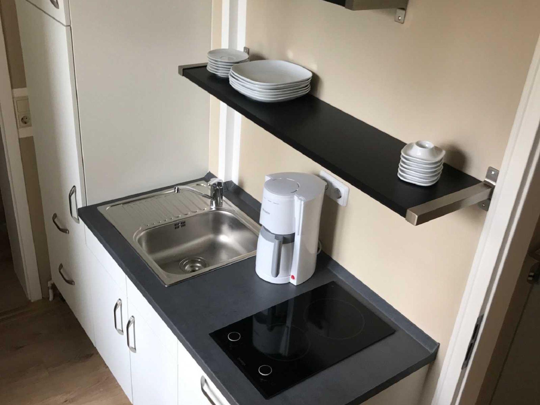 • Küche ist komplett ausgestattet: Kühlschrank, Mikrowelle, Kaffeemaschine, Wasserkocher und weiterem umfangreichen Kücheninterieur