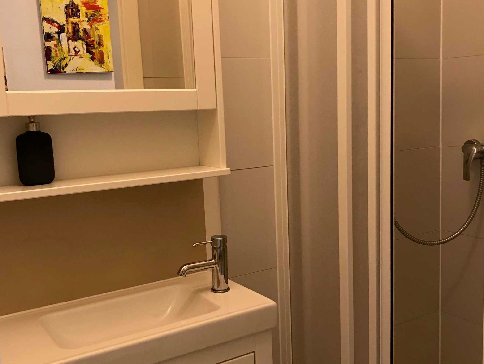 • Wohnzimmer: bequemes Schlafsofa (1,40x2,00 m) für 1 weitere Person; Flachbildfernseher, DVD-Player, Radio