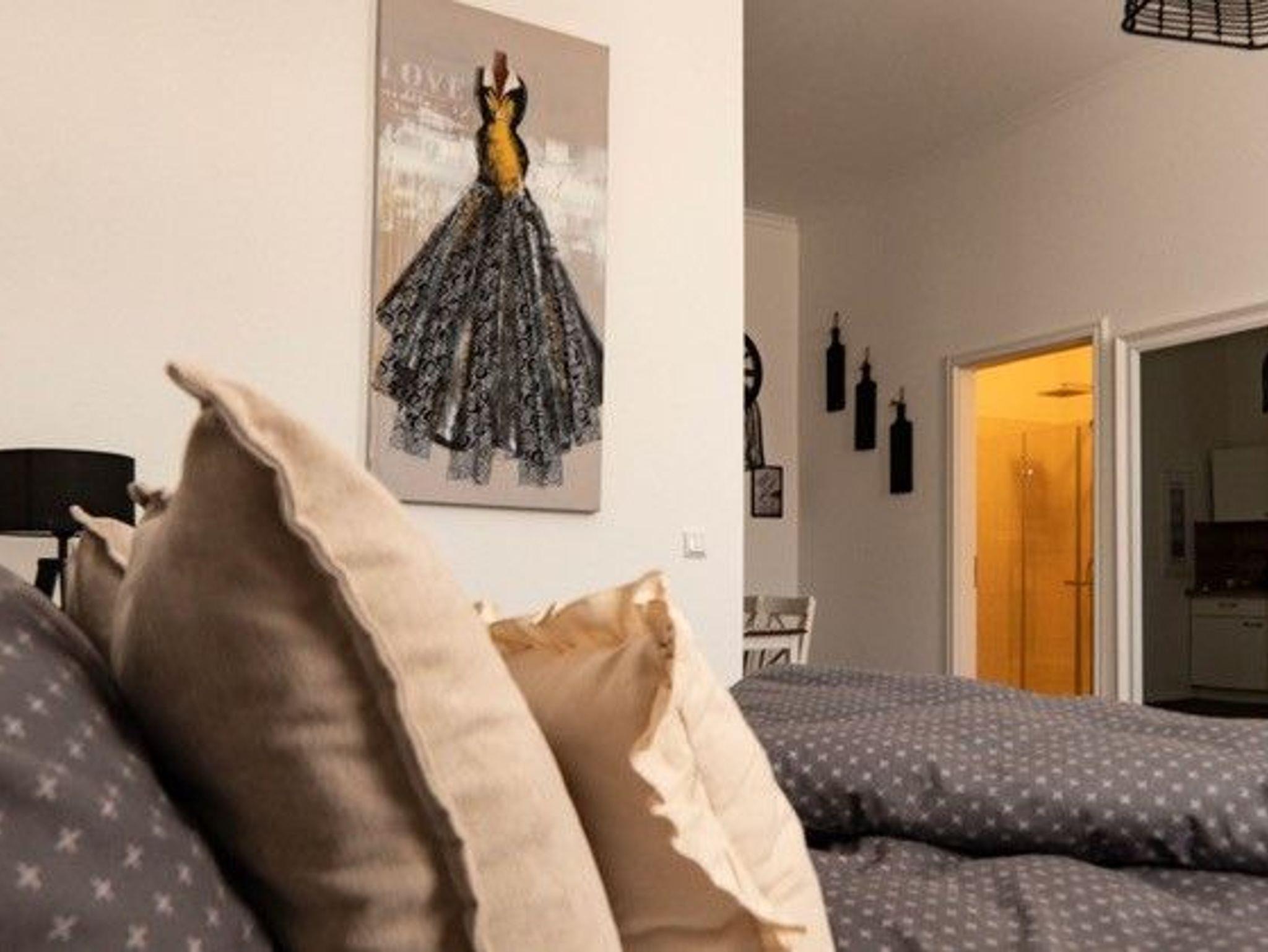 • kombiniertes Wohn-/Schlafzimmer mit einem Doppelbett