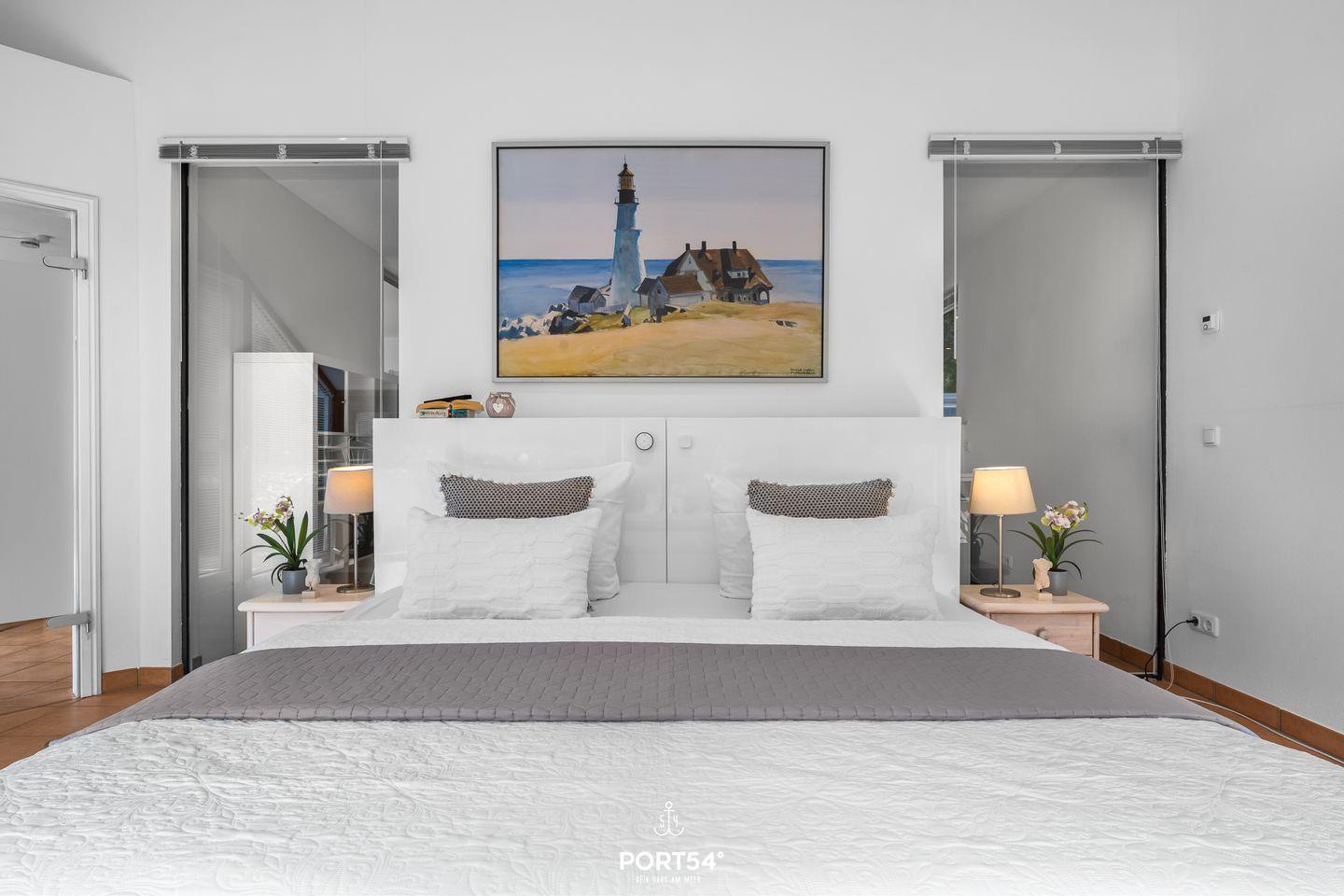 Beeindruckend sind die zum Garten ausgerichteten Fensterfronten - sowohl im Schlafzimmer als auch im Wohn- und Essbereich.