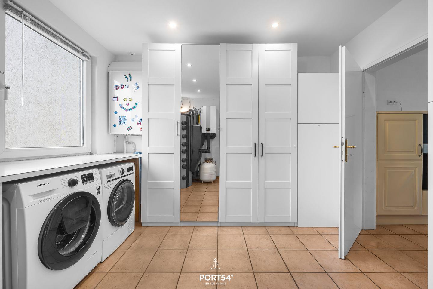 Die offene Küche, die harmonisch zum Wohnbereich gestaltet ist, ist mit modernen Geräten ausgestattet. Ein Cerankochfeld, ein Kühlschrank sowie eine Spülmaschine sorgen dafür, dass das Kochen und Aufräumen zum Vergnügen wird. Hochwertige Küchenutensilien und Geschirr stehen bereit, um die Essenszubereitung zu erleichtern. Der Essbereich lädt zu gemeinsamen Mahlzeiten ein, während die Sofaecke einen komfortablen Ort zum Entspannen und Verweilen bietet.