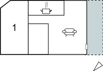 Det ca. 35 m² store feriehuset for opptil 3 personer, totalrenovert i 2018, ligger ca. 30 m fra vannet og er utstyrt med stue (sovesofa - ekstra seng for 1 person, flatskjerm-TV, DVD-spiller, radio med CD-spiller) med åpent kjøkken (elektrisk komfyr med stekeovn, kjøleskap med frysedel, mikrobølgeovn, diverse små kjøkkenapparater), et soverom (dobbeltseng) og bad med dusj, WC og hårføner. Feriehuset har W-LAN, insektsnett på vinduene og elektrisk oppvarming. Røyking er kun tillatt utendørs. Feriehuset inkluderer: møblert terrasse med grill, 1 sykkel (gratis), 1 robåt (gratis).