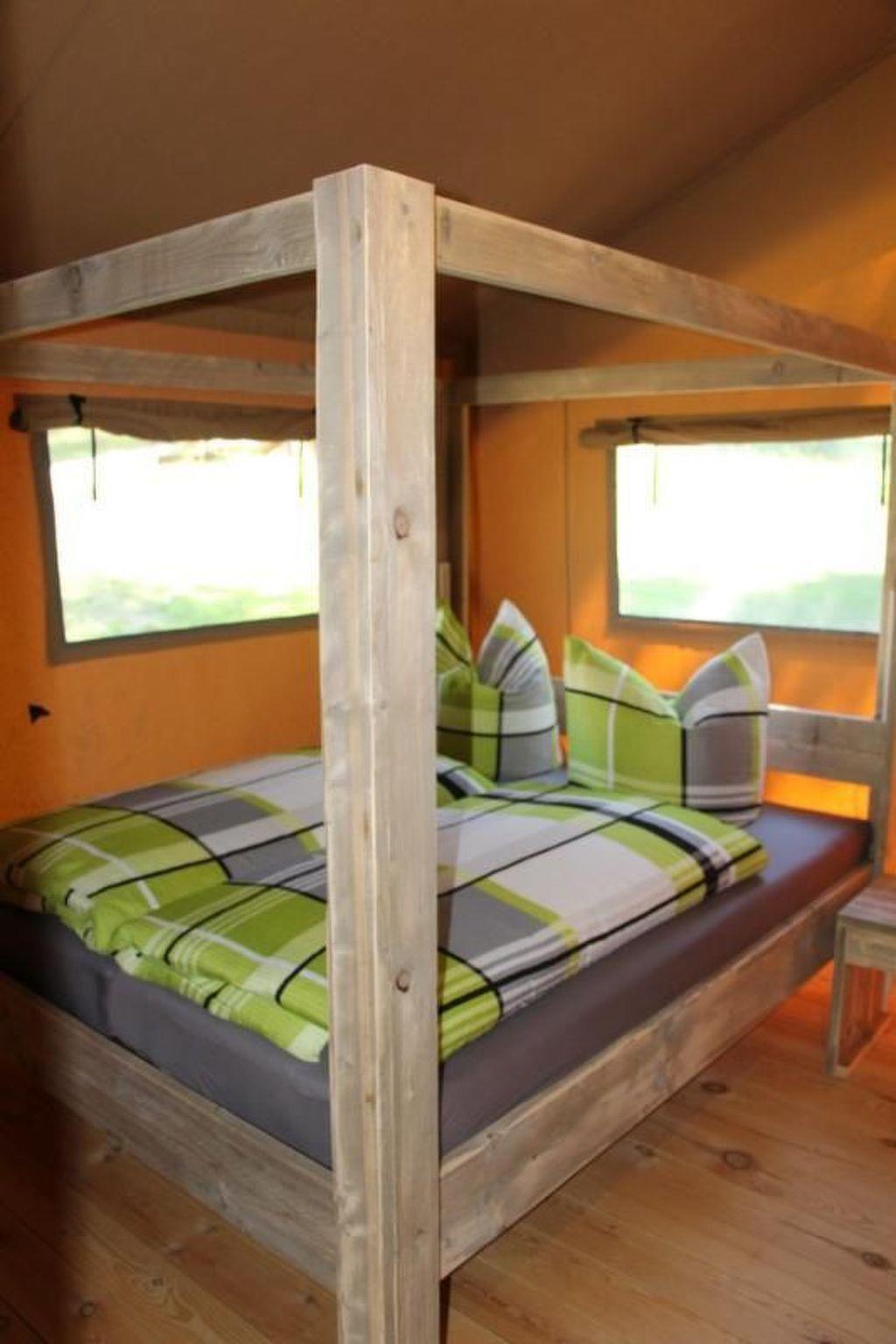 Location: The climatic health resort and state-recognised resort of Lychen is located in the Uckermark and borders the Feldberg lake district and the Havel-Wasser-Strasse. Lychen is situated between extensive forests and in the middle of an attractive lake district with access to the public waterway to the Havel waters, the "Mecklenburg Brandenburg Lake District", as well as the North and Baltic Seas. Situated on the north-western edge of the Uckermark, the small border town to Mecklenburg-Vorpommern has become a popular holiday resort. Lychen rightly has the nickname "Märkisches Interlaken", which alludes to the town's exposed island location at the Lychener Seenkreuz and the countless bodies of water in the surrounding area. Lychen rightly bears the nickname "climatic health resort", as critics can still measure and enjoy inhaling the clean air today. Situated in the middle of this charming water- and forest-rich environment, Lychen is an ideal starting point for hiking, mushroom hunting, swimming, cycling tours and boat excursions. The Woblitz river and the Himmelpforter lock provide connections to the Stolpsee lake and the Havel waterway. To the south of the town is an extensive wooded area that extends far beyond the Havel and Bredereiche. This area, like the northern wide forest area up to Feldberg, is intended for nature conservation. The medieval town lies between Templin or Prenzlau and Fürstenberg or Feldberg in Mecklenburg-Western Pomerania. Lychen is an up-and-coming spa and tourist town with no industry, but is open to crafts and service providers. Enterprises that do not harm the natural resources, but are dependent on them, such as the Flöser, the Draisienenlinie are supported by the city fathers! Lychen is also connected to the public network of regular bus routes.tent lodges at the lido Großer Lychensee.the tent lodges fulfil dreams! Fully equipped with kitchen, dining table, shower and cosy lounge furniture. On the terrace you can sit in the middle of nature - and almost smell the vastness of Africa.equipment: two sleeping areas, 1 double bed, 1 bunk bed and a single bed, so the tent lodge offers space for up to 5 people, Bed linen available, kitchen and household utensils, 2-zone hob, coffee machine, fridge, microwave, toaster, kettle, bathroom with shower, WC & washbasin, living area with dining table, seating area and chairs, TV, radio, satellite system, terrace, garden, lounge furniture, swimming in the lido in the immediate vicinity, minimum stay 3 days in the low seasons and minimum stay 7 days in the high seasonShort descriptionOther : Non-smoking houseShort description 1Number of kitchens : 1SurroundingsLeisure facilities : Boat hire, Bicycle hireSports facilities in the area : Fishing, Canoeing, Cycling, Horse riding, RowingGarden and outdoor facilitiesRecreational facilities at the property : PlaygroundGarden equipment : Garden furniture available, Barbecue