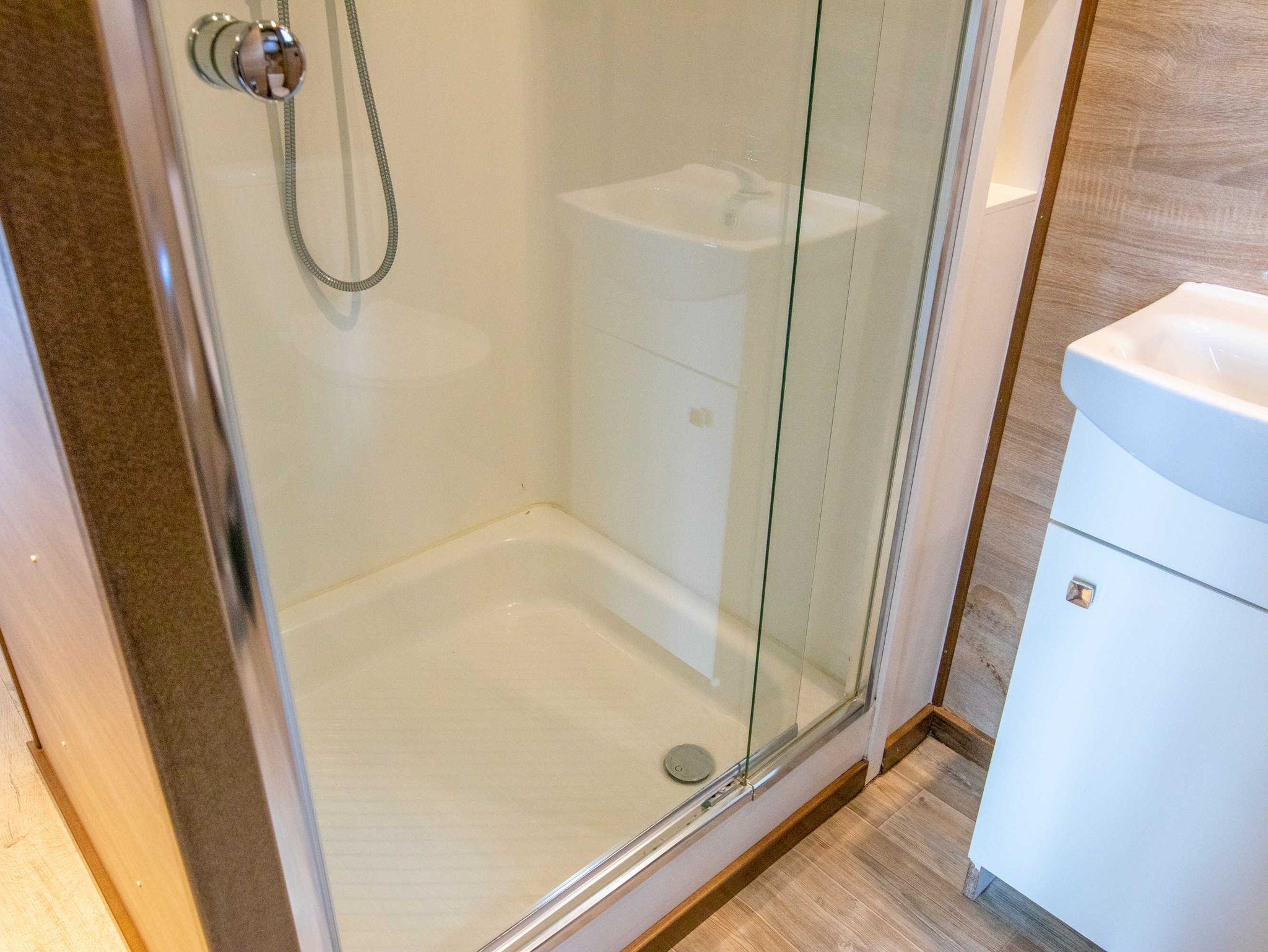 Das 40m² große Mobilheim ist komplett eingerichtet mit Wohnraum mit offener Küche und Esstisch, 2 Schlafzimmern, Bad mit Dusche/WC und gemütlichen Terrassenmöbeln.