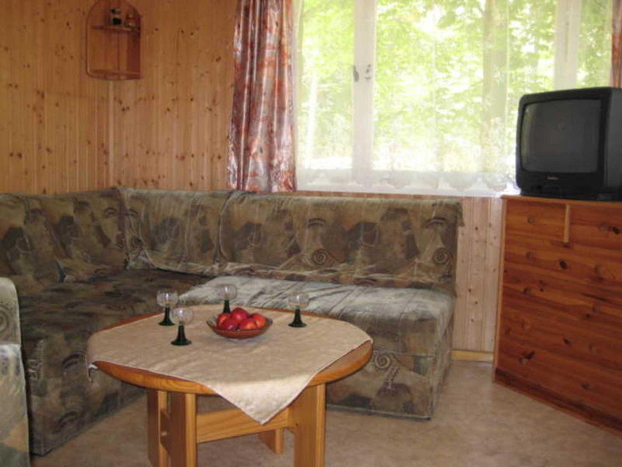 Ferienbungalow für max. 6 Personen, im Wald direkt am Wasser gelegen, mit Seeblick, 3 Schlafzimmer (2x Doppelbett, 1x Etagenbett), Singleküche (2 Plattenelektroherd, Kühlschrank, Wasserkocher, Toaster, Kaffeemaschine usw.) Duschbad, großzügiges Wohn und Esszimmer, Terrasse