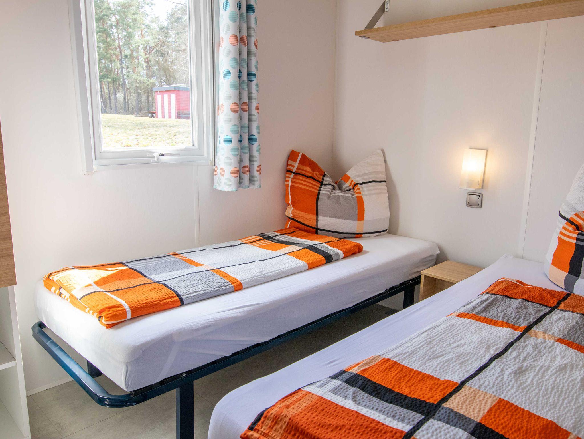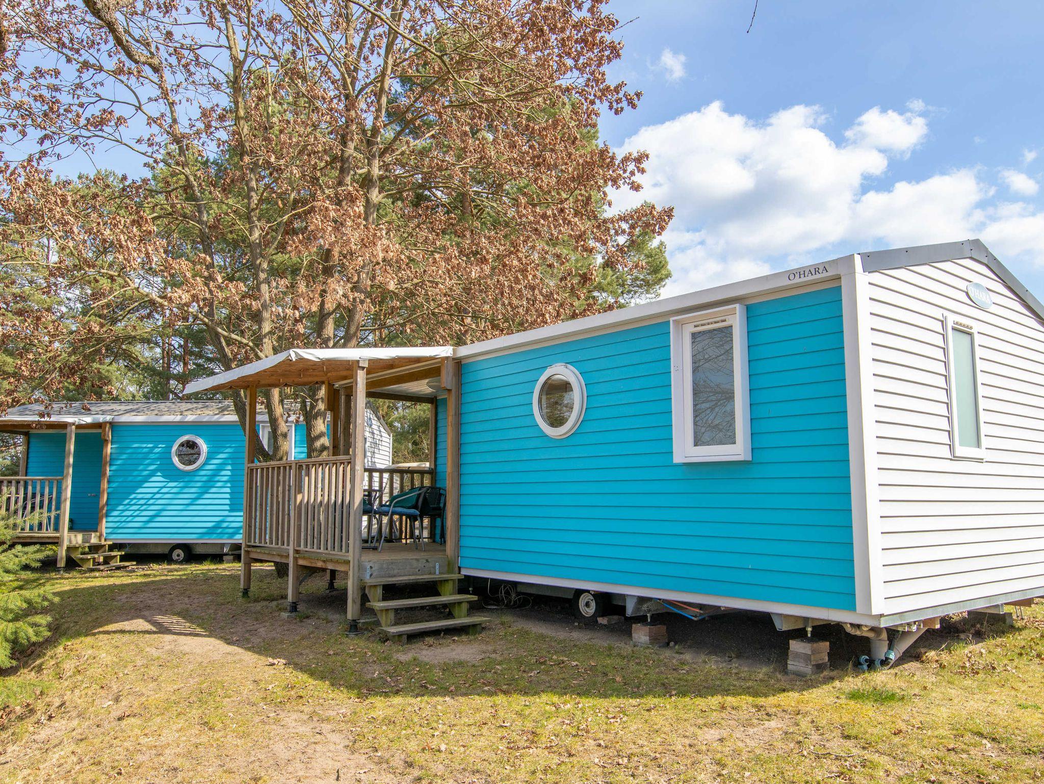 Die komfortabel eingerichteten mobilen Mobilheime Lagune 1 und 2 befinden sich in dem Camping- und Ferienpark in Lychen direkt am Strandbad des Großen Lychensees. Von den Mobilheimen haben Sie einen direkten Zugang zum Wasser. Die Mobilheime liegen im Hang, von dem Sie einen unverbauten Seeblick genießen können. Die Mobilheime sind mit zwei Schlafzimmern, eines mit französischem Doppelbett (140x200) und eines mit zwei Einzelbetten (80x190), einer komplett ausgestatteten Küche, Wohnraum mit TV/Radio und einem Bad mit Dusche und separater Toilette ausgestattet. Sie können den Sonnenuntergang von der integrierten Terrasse genießen.