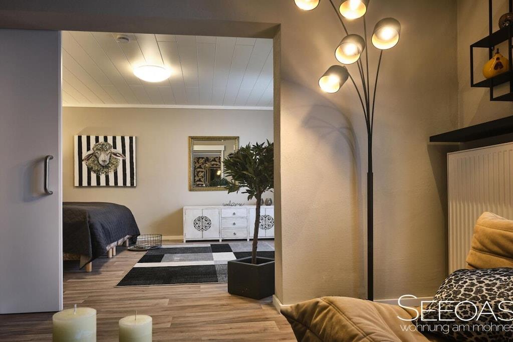 En moderne, men komfortabelt møblert kjellerleilighet som dekker alle behovene til en ferierende. Venner med praktiske behov kan komfortabelt slå seg ned på 43 kvadratmeter. Möhne-sjøen ligger bare noen skritt unna og tilbyr en rekke sports- og fritidsaktiviteter. På varme dager inviterer terrassen deg til å slappe av og koble av.