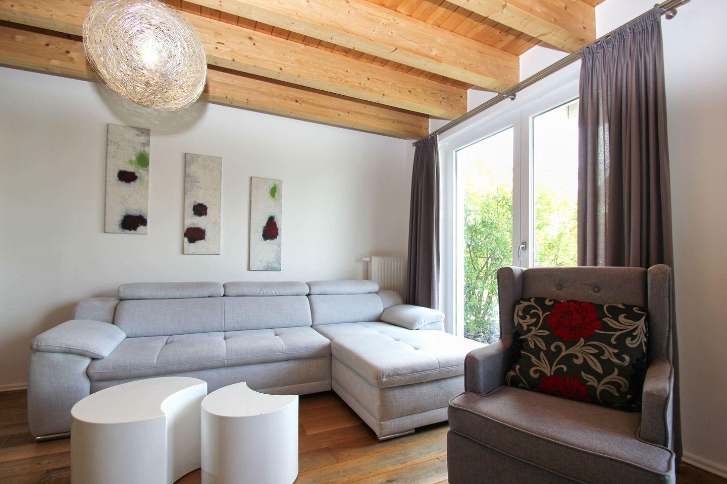 WOHNEN // Wohnraum mit Essbereich, Sitzgarnitur mit bequemer Couch, Flachbild-TV, DVD-Player, Stereo Sound System++