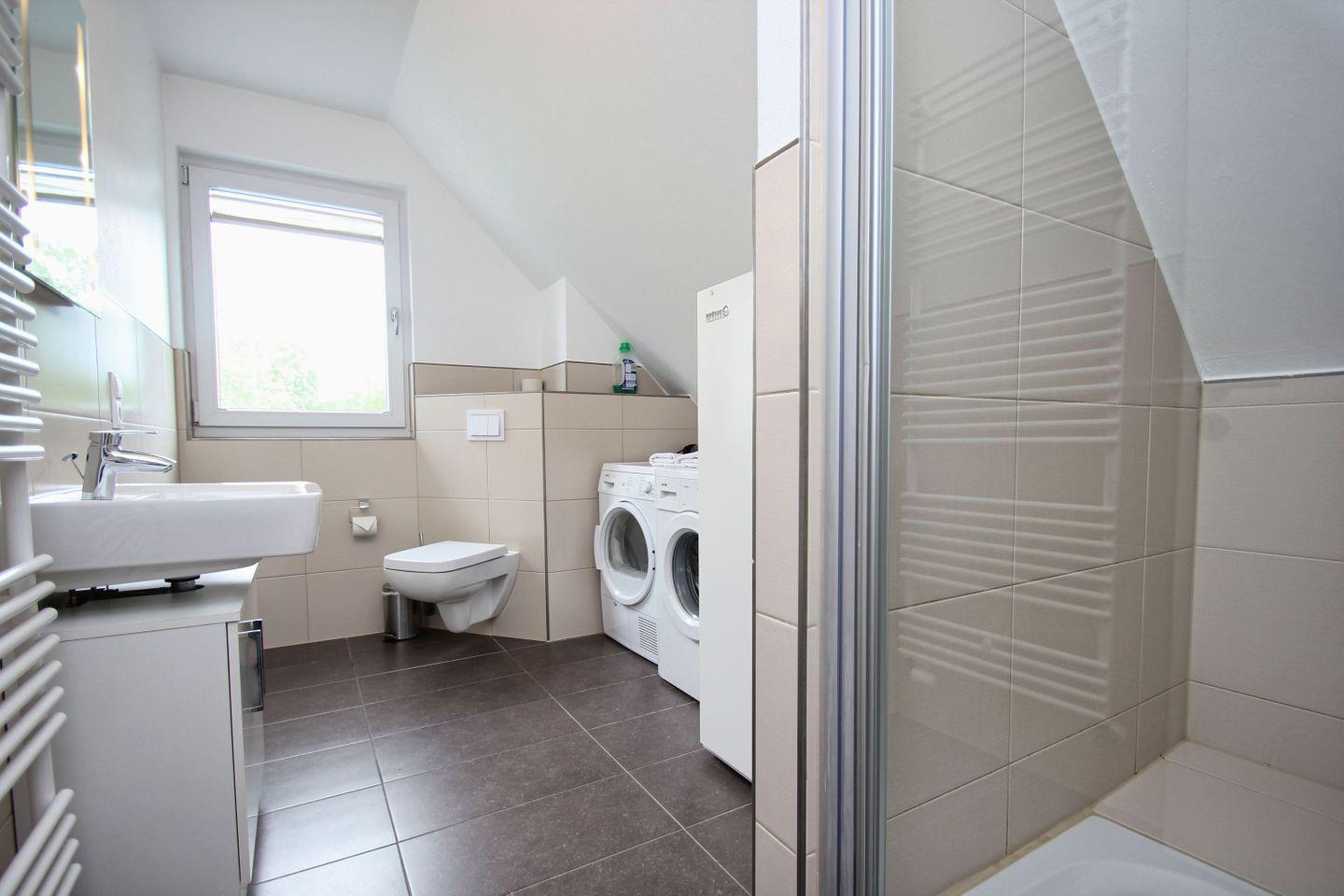 BAD // großes Tageslichtbad mit Infrarot-Sauna, mit Dusche und Badewanne im EG, 2. Bad mit Dusche (ca. 1,75m Stehhöhe) und WC sowie Waschmaschine und Trockner im OG ++