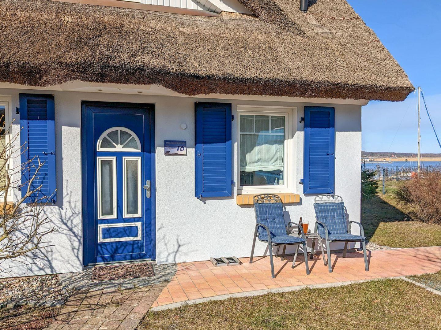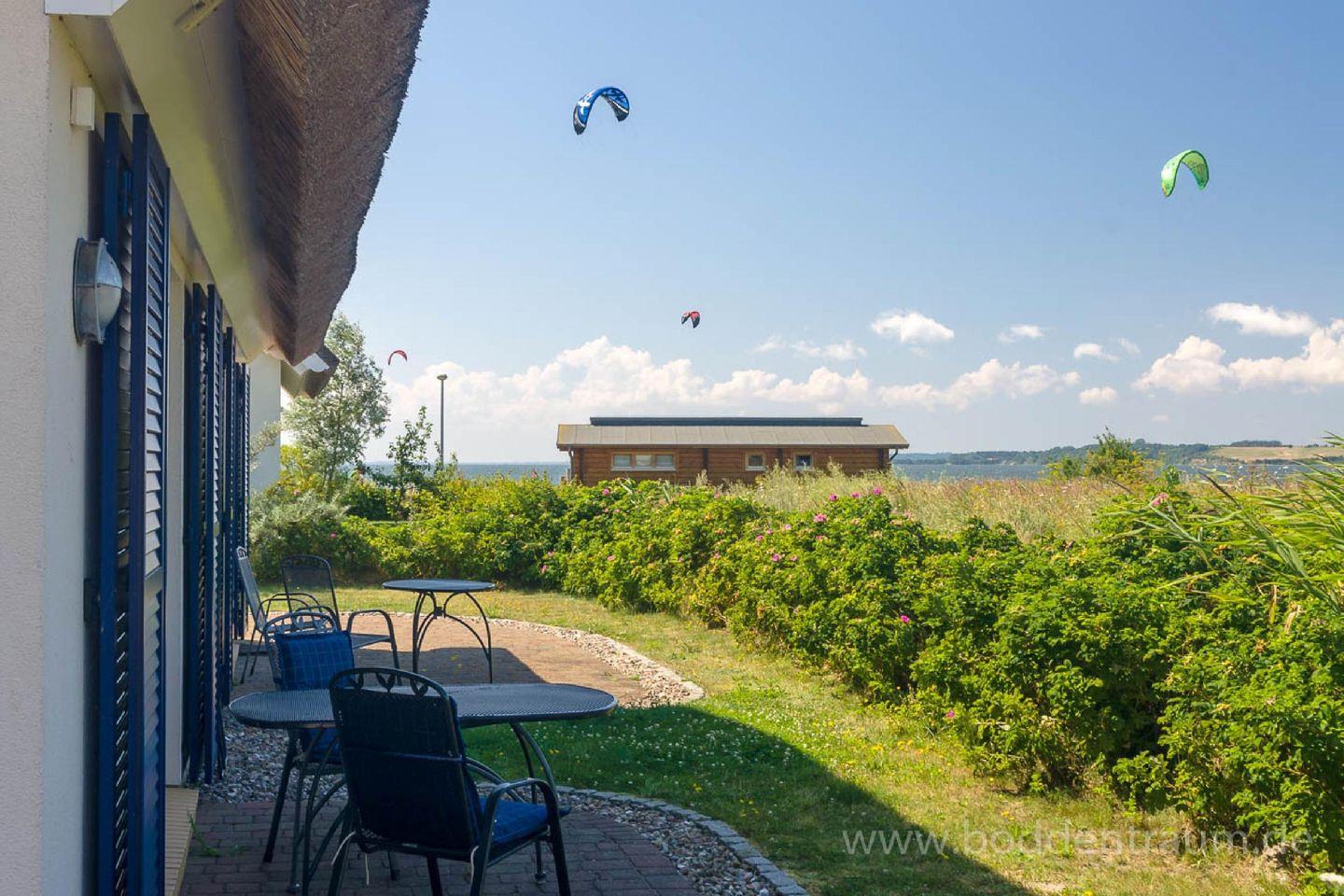 Am Seglerhafen, Terrasse, Garten, Meerblick - Ferienhaus Boddentraum Morgenrot