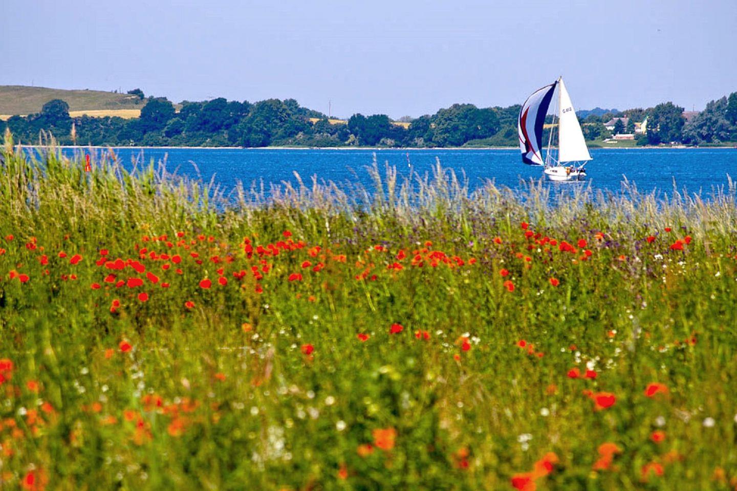 Die großzügigen Terrassen der beiden Haushälften "Abendrot" und "Morgenrot" sind beide nach Norden zum Hafen hin ausgerichtet, so dass sie den Segelbooten beim An- und Ablegen zuschauen, das beschauliche Treiben am Hafen und den herrlichen Panoramablick genießen können. Gern kann auch ein Ausflug auf der Hanseat vorgenommen werden. Da die Terrassen jeweils über die Hausseiten hinausgehen, können Sie hier fast den ganzen Tag in der Sonne baden.