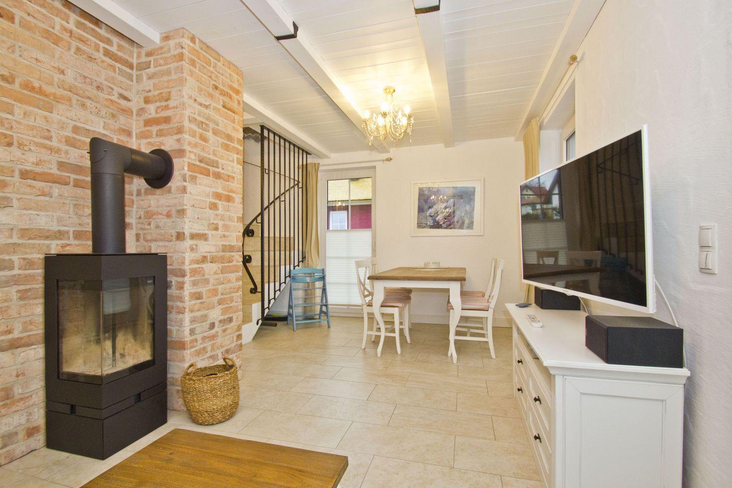WOHNEN // Wohnraum mit Essbereich, Kamin, Sitzgarnitur mit bequemer Couch, Flachbild-TV, CD-Player ++