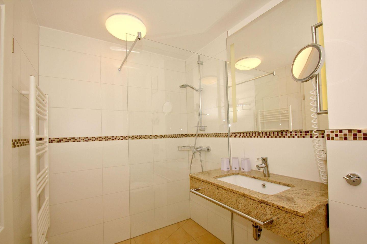 BAD // zwei innen liegende Bäder mit Dusche und WC, Kosmetikspiegel und Fön ++