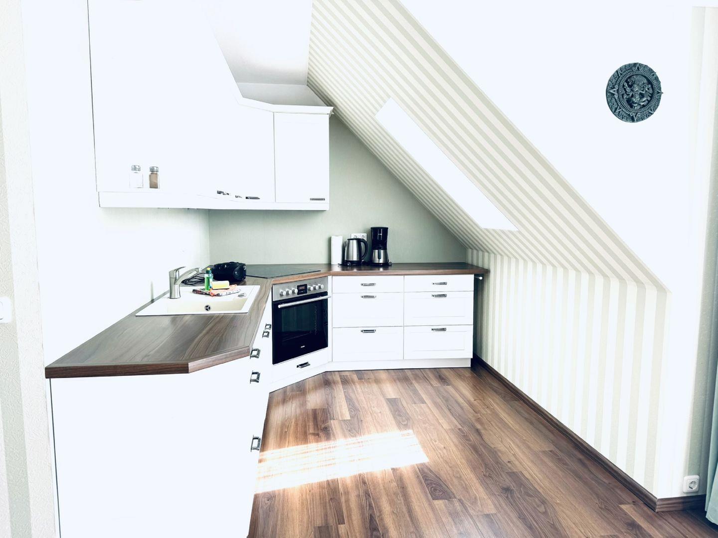 KÜCHE // offene Küche, 4-Platten Ceranfeld, Spülmaschine, Kühlschrank, Toaster, Wasserkocher, Kaffeemaschine, reichlich Besteck, Geschirr und Küchenutensilien ++