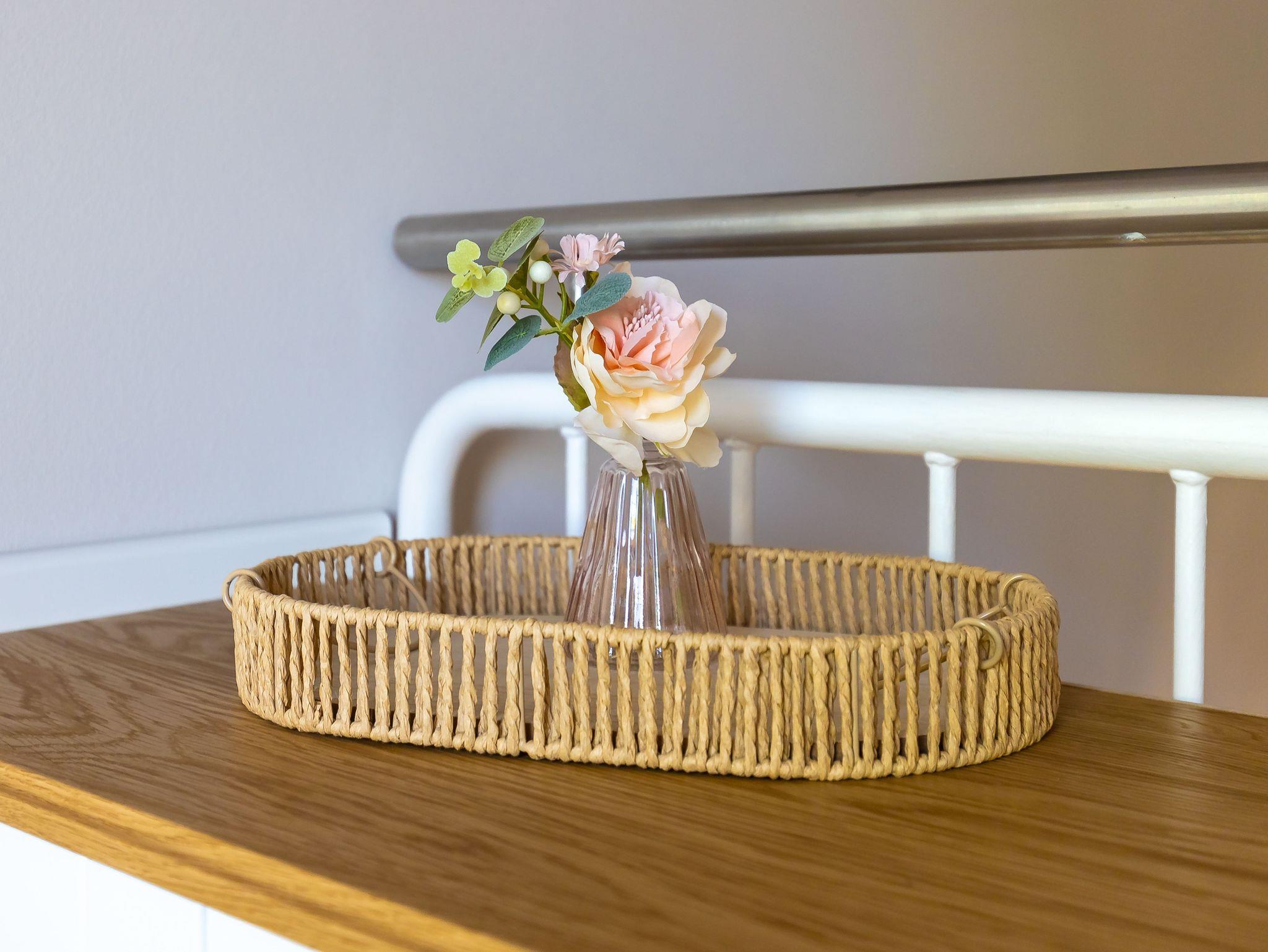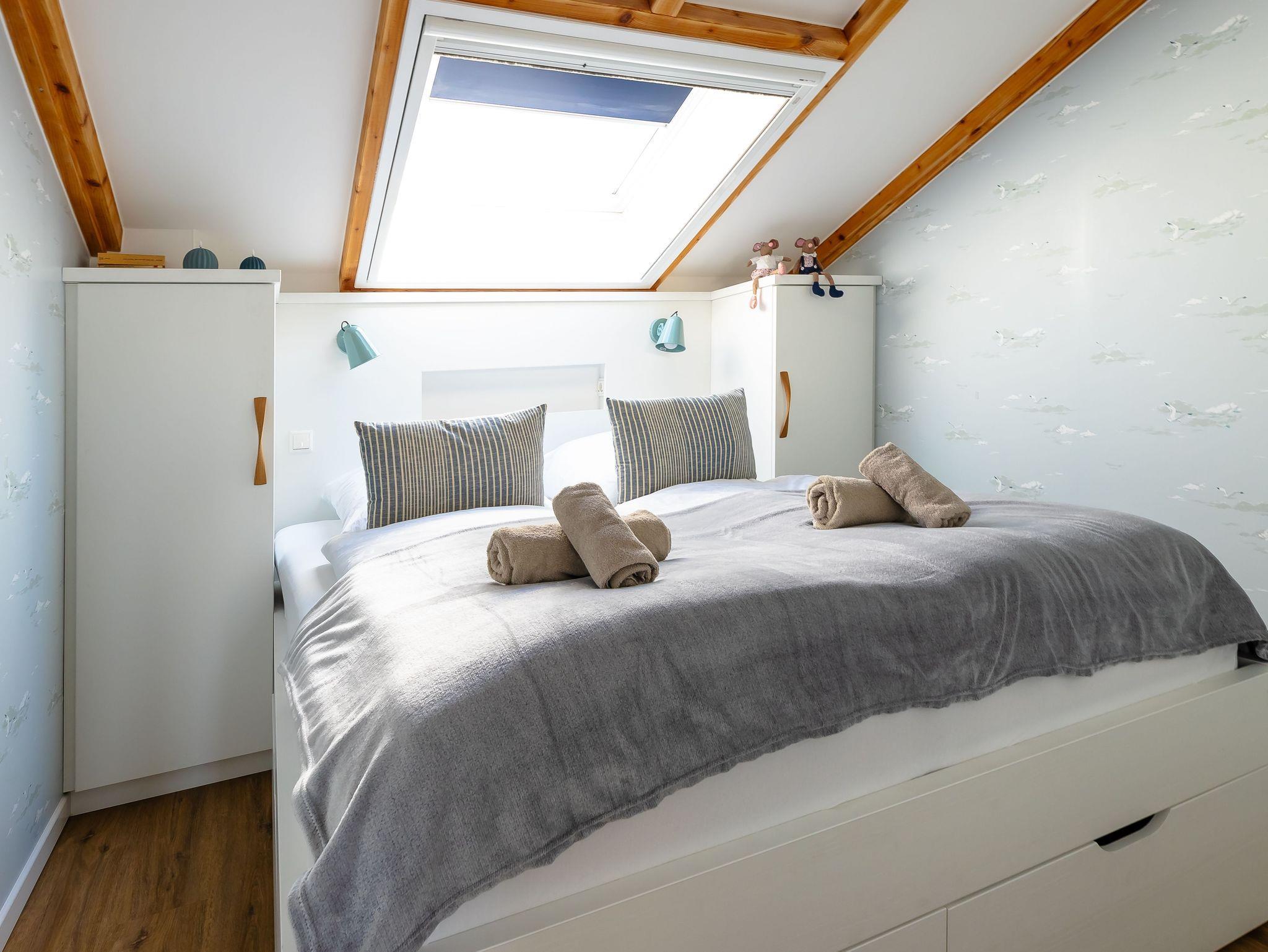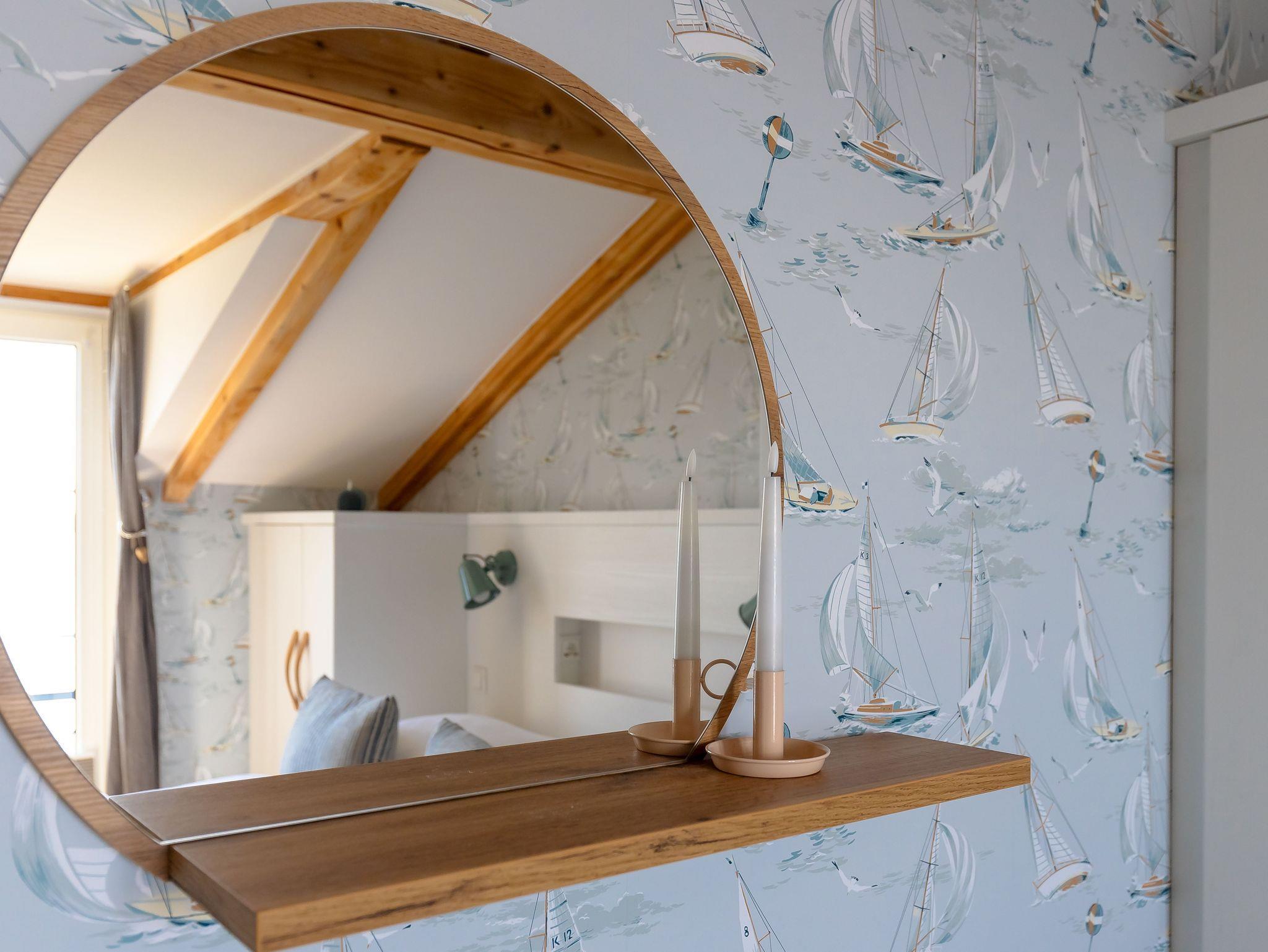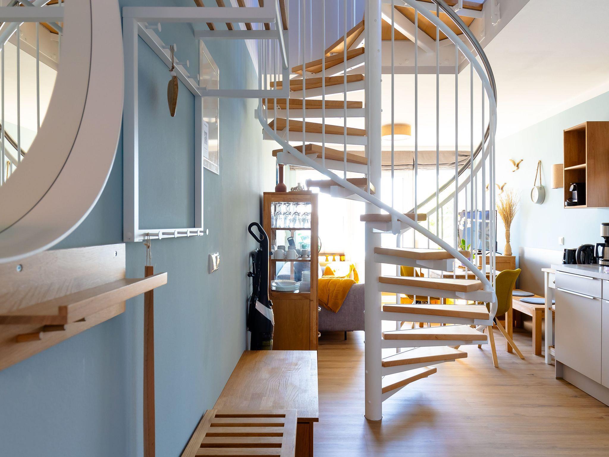 Die modern und liebevoll eingerichtete Wohnung 3 im Haus Seeblick im Maisonette-Stil verfügt über eine sonnige Terrasse mit offenem Seeblick, zwei separate Schlafbereichen im Obergeschoss, sowie einem hellen Wohnbereich mit offener Küchenzeile. Sie umfasst ca. 42qm. Genießen Sie einen unverwechselbaren Seeblick ? direkt beim Aufstehen! Der komfortable Wohnbereich mit Couch + Couchtisch, einen Sessel, einer Stehlampe, eine Kommode mit Flachbild-TV sowie eine Vitrine bietet Ihnen einen gemütlichen Ort zum Ausklingen der erlebnisreichen Tage auf der Halbinsel Mönchgut. Von hier aus gelangen Sie auf die sonnige und bestuhlte Terrasse (Süden) mit Sonnenschirm und einem einzigartigen Seeblick. Angrenzend befindet sich eine offene und voll ausgestattete Küchenzeile mit Spülmaschine, Kühlschrank mit Eisfach, Dunstabzugshaube, Wasserkocher, Kaffeemaschine, Nespresso Maschine, Toaster, Induktionsfeld und Mikrowelle und ein Essplatz. Im Obergeschoss befinden sich die beiden Schlafräume, die jeweils mit einem komfortablen Doppelbett (1,80m x 2,00m) und Kleiderschrank ausgestattet sind. Auf der unteren Ebene befindet sich das freundliche Tageslicht-Bad mit einer ebenerdigen Dusche, ein WC, ein Fön sowie ein Waschplatz mit dazugehörigem Spiegel. Für unsere kleinen Gäste steht ein Hochstuhl sowie ein Kinderreisebett (ohne Bett Inlett/inkl. Matratze) zur Verfügung. Auch ein 4-Beiner ist mit seinem eigenen Schlafplatz gegen eine Gebühr ein gern gesehener Gast. Eine Fahrrad-Unterstellmöglichkeit steht Ihnen und allen Gästen des Hauses zur gemeinschaftlichen Nutzung kostenfrei zur Verfügung. Ihr PKW-Stellplatz befindet sich knapp 100m vom Haus entfernt und ist für Sie inklusive. Die Erstausstattung eines Wäschepaketes (komplette Bettwäsche, 1 Duschhandtuch, 2 kleine Handtücher) können Sie bis 14 Tage vor Anreise gegen einen Aufpreis dazu buchen oder durch eigene ergänzen. Ab 2 gebuchten Paketen erhalten Sie einmalig 1 Geschirrhandtuch und 1 Duschvorleger hinzu.