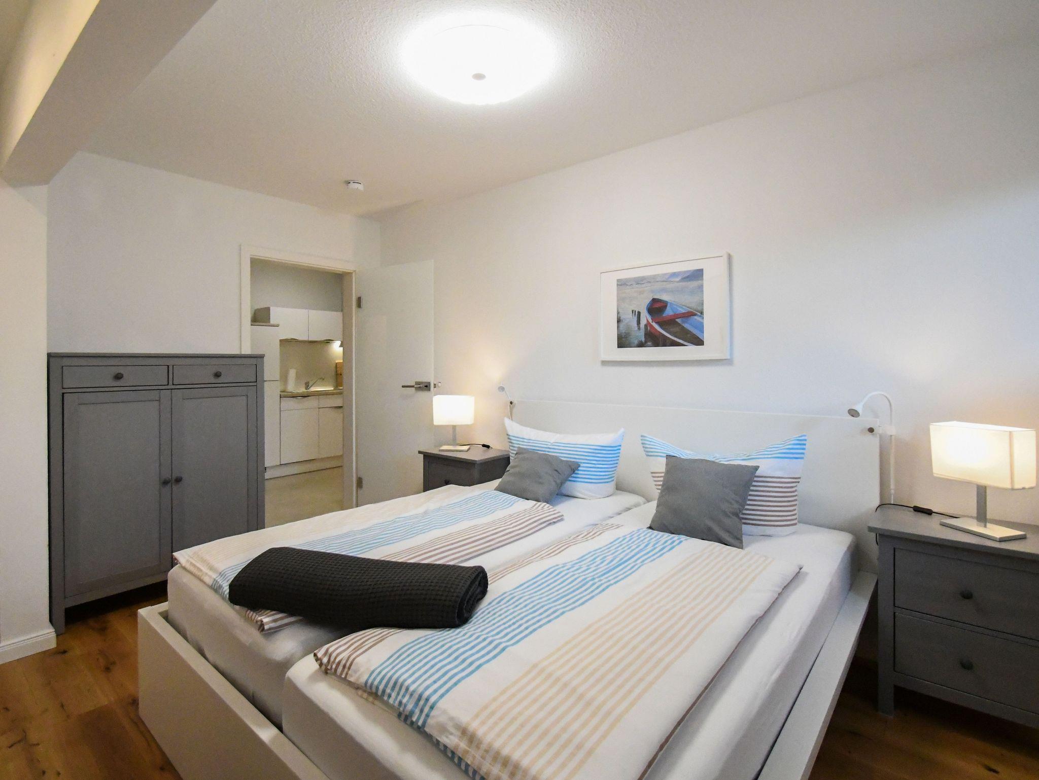 befindet sich das Schlafzimmer, dass groß genug ist für ein 180 x 200 m Doppelbett,