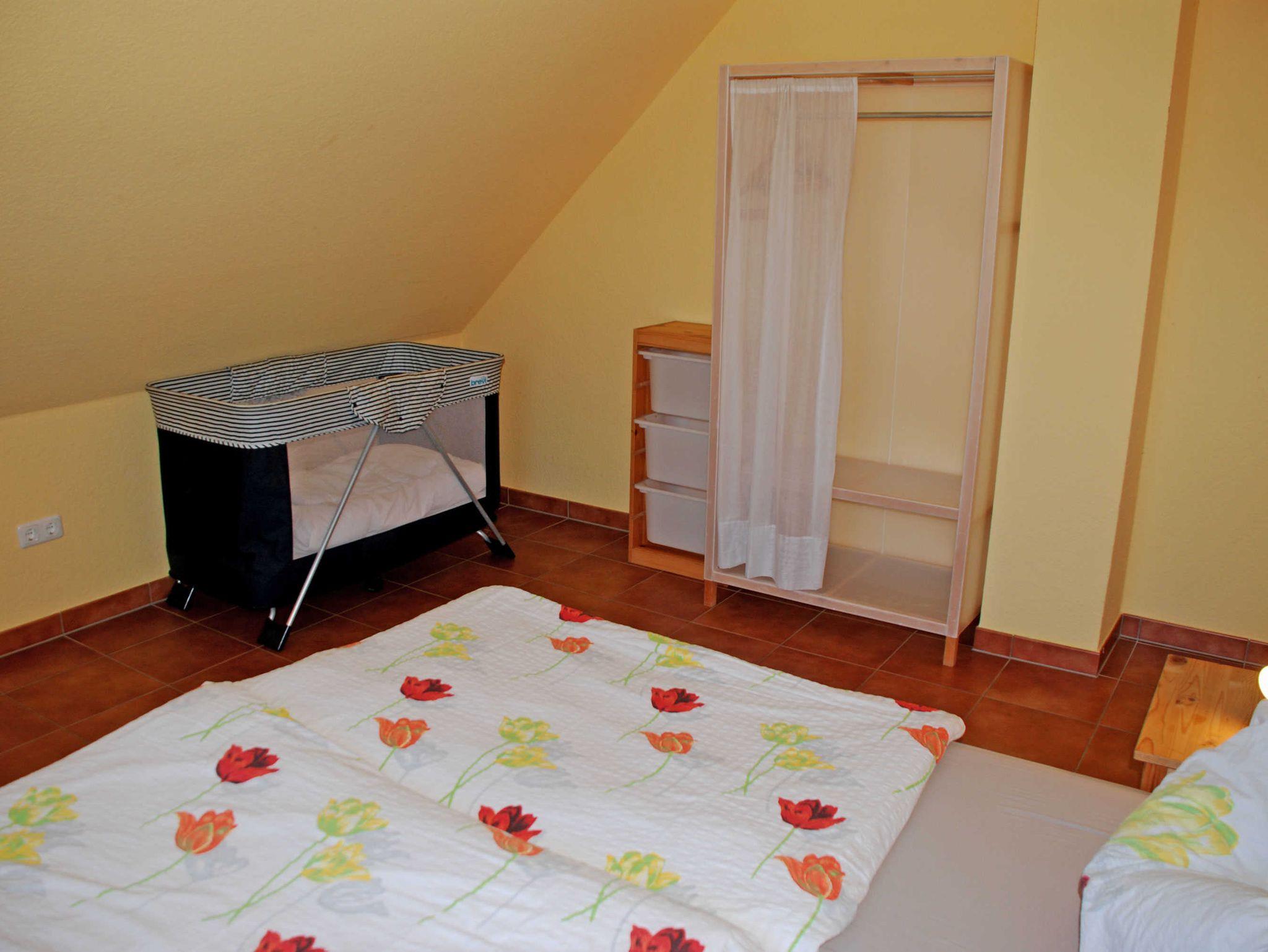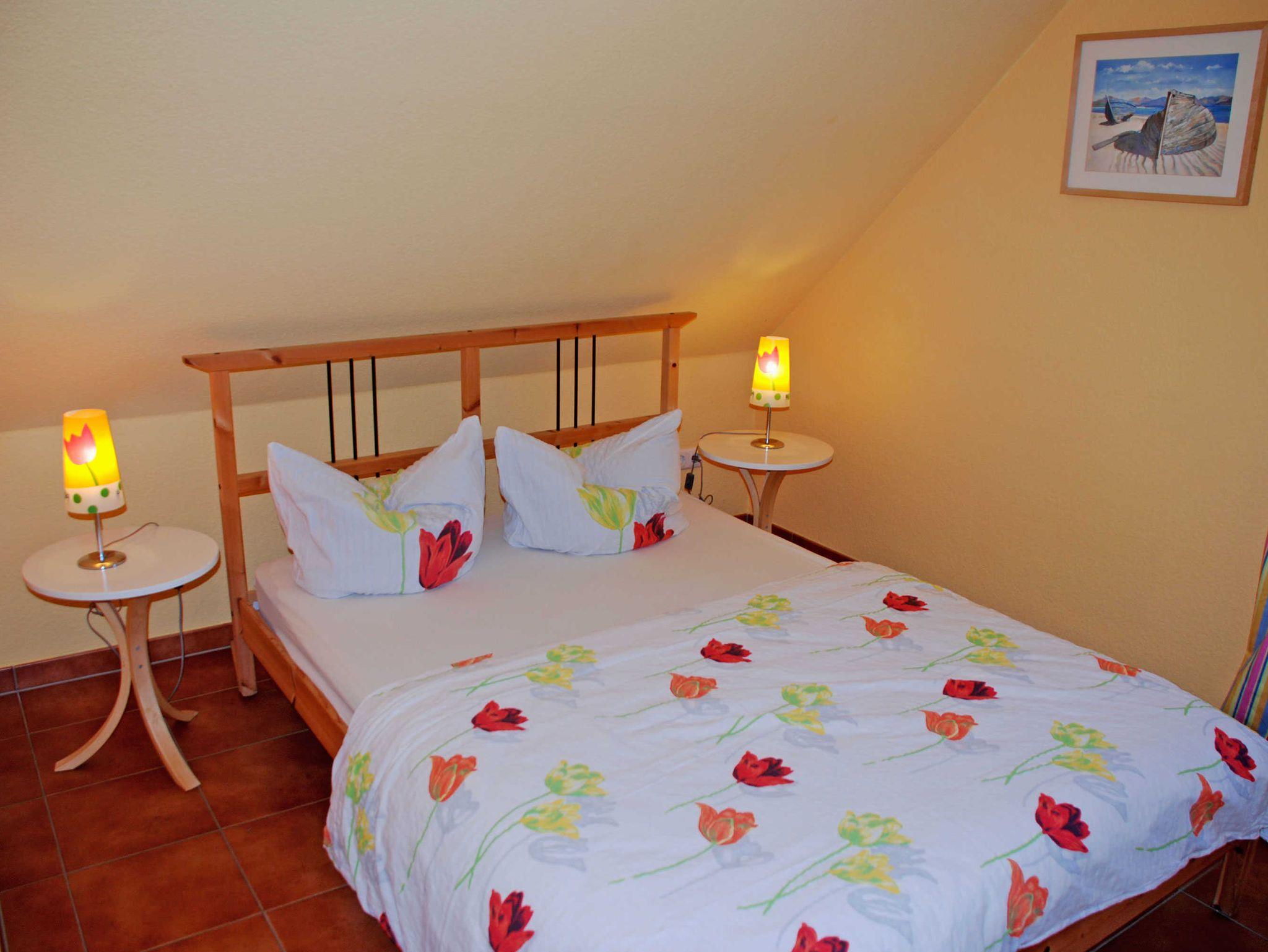 Die zwei Schlafzimmer im Obergeschoss verfügen über bequeme Doppelbetten mit Nachttischen und Leselampen sowie Fliegengitter. Das schöne Bad ist mit einem Fenster, Dusche, WC sowie einem Waschtisch ausgestattet. Ein Kinderbettchen sowie ein Hochstuhl stehen Ihnen auf Anfrage bereit.