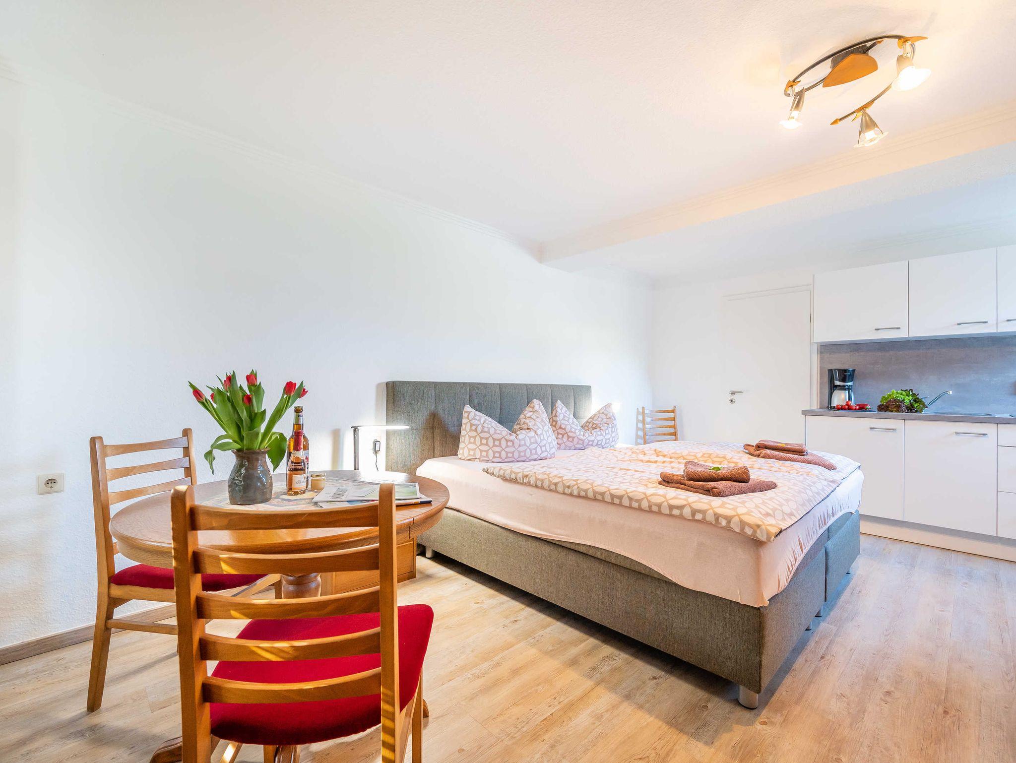 In unserem Appartement steht Ihnen ein kombinierter Wohn- Schlafraum mit einer Pantryküche und ein Duschbad zur Verfügung. Sie haben einen separaten Eingang und eine möblierte Terrasse.