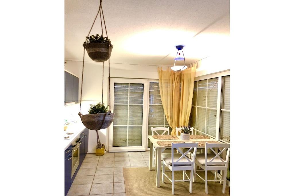 Nyt uhindret utsikt over vannet og øya Usedom. Vår forhøyede terrasse tilbyr spektakulær utsikt over lagunen. Sjarmerende og moderne feriehus i et rolig rekreasjonsområde rett ved vannkanten foran øya Usedom. Stor, lys stue med tilgang til terrassen, åpen moderne kjøkkenløsning, to soverom og et bad med dusj. Nyt roen i naturen, den lille private havnen rett ved siden av komplekset vårt, og den vakre stranden Mönkebude med strandstoler, restauranter, snackbarer, en lekeplass og en marina.