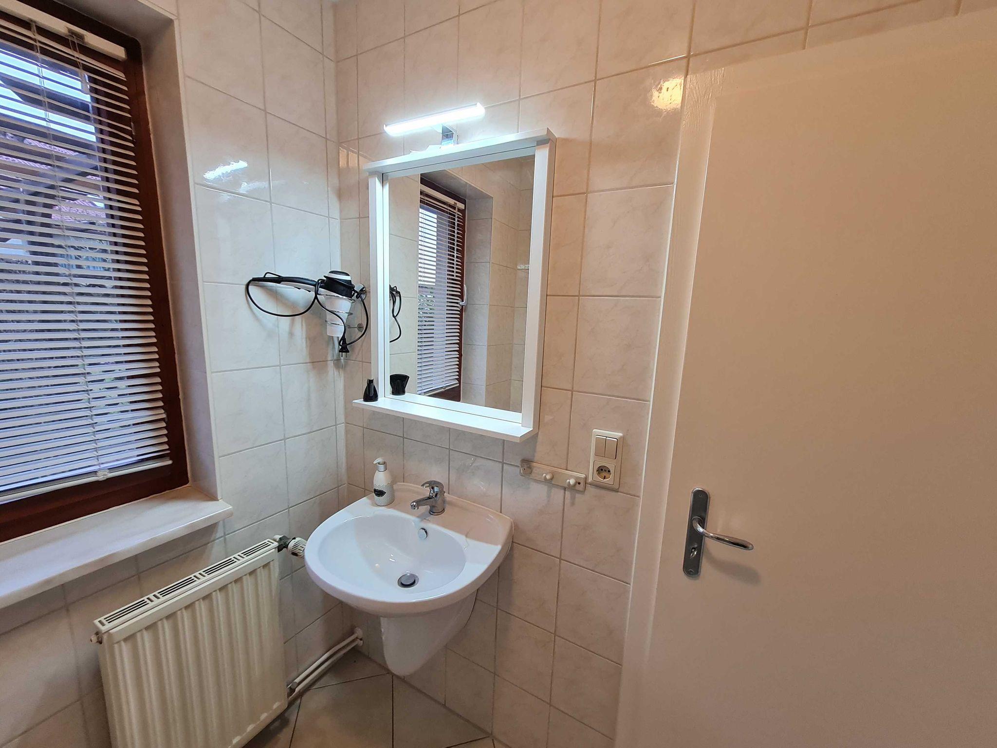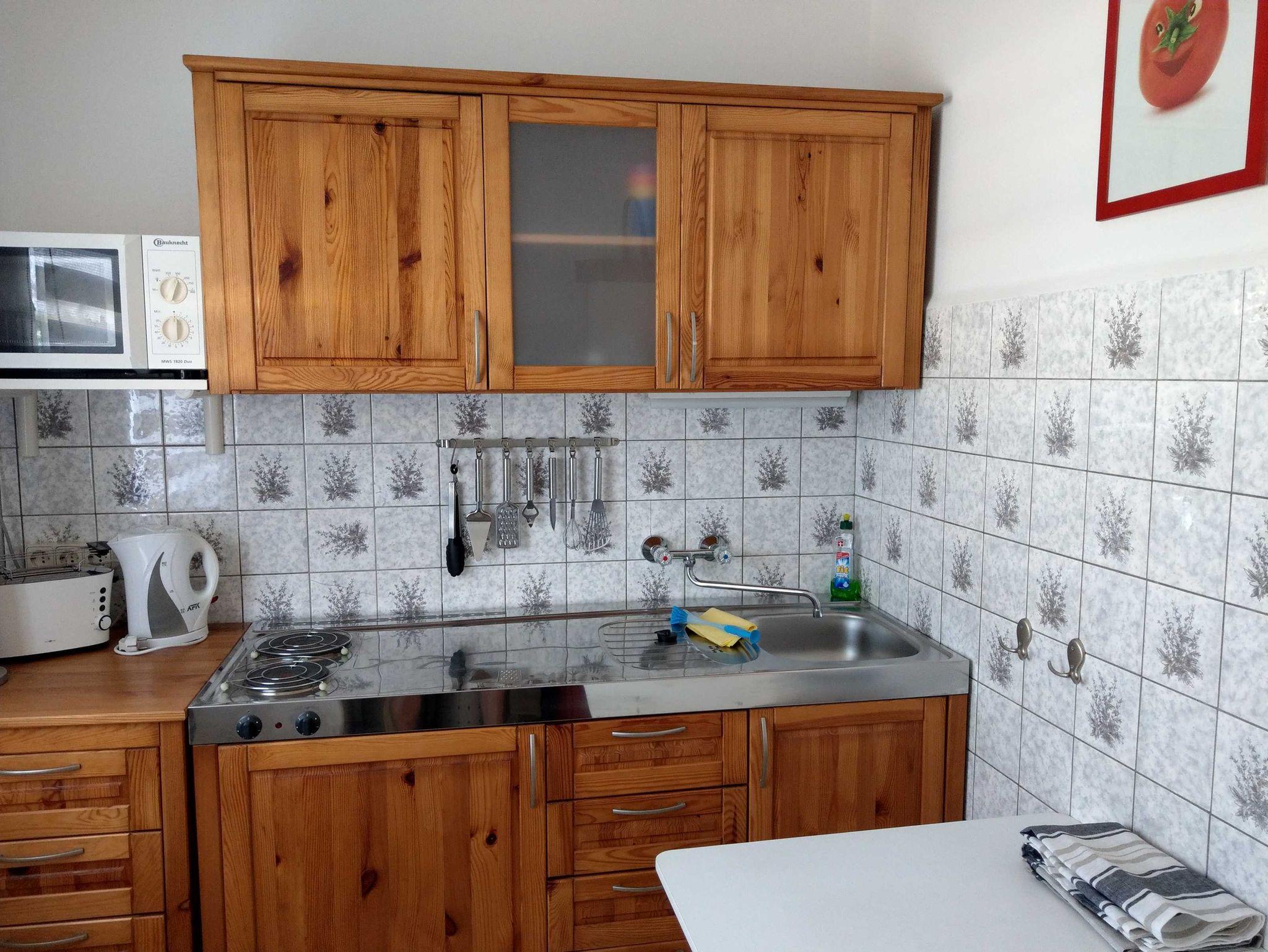 Küche (2 Kochplatten, Kühlschrank, Mikrowelle, Toaster, Kaffeemaschine, Wasserkocher, Minibackofen),