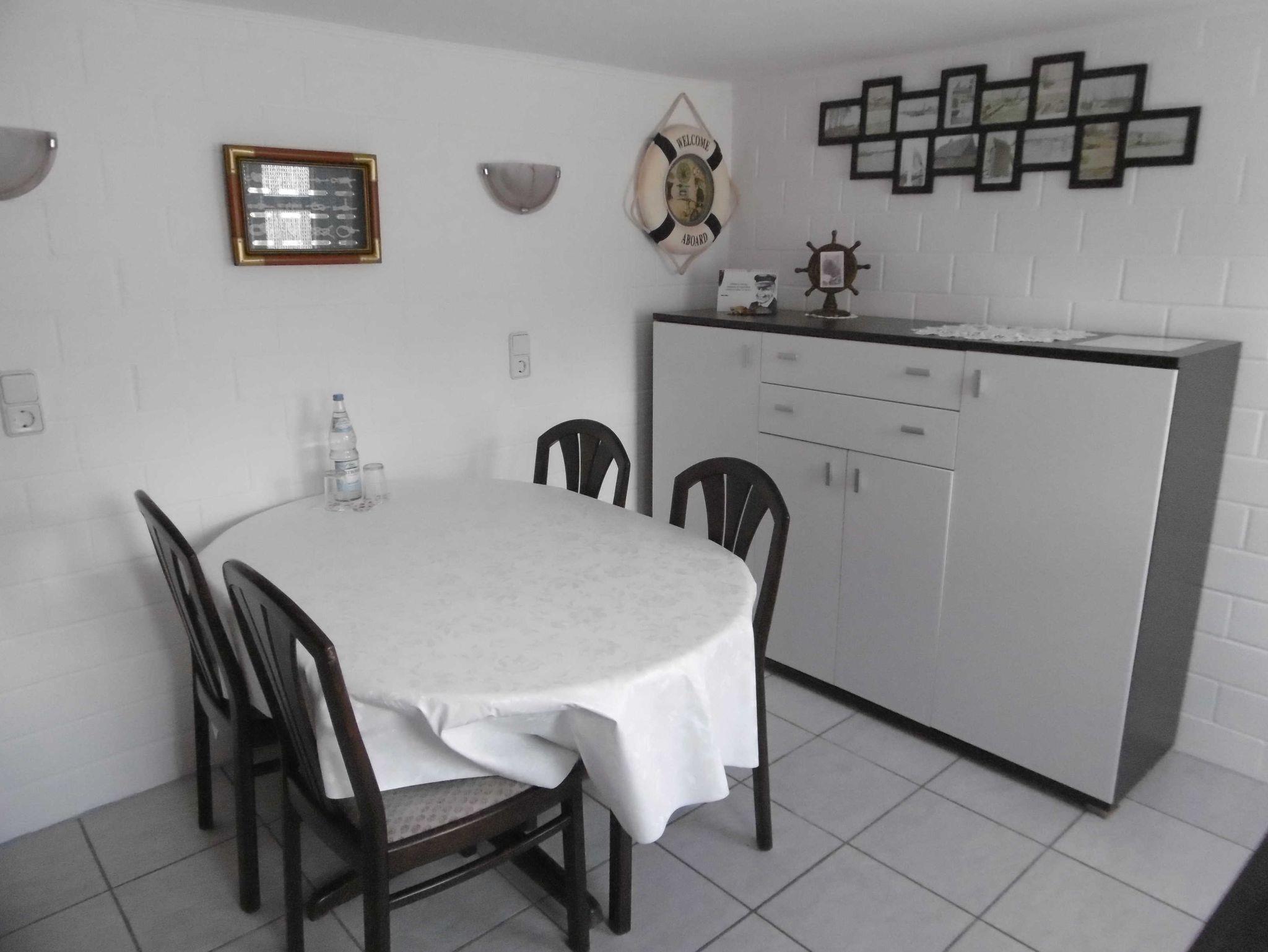 Ebenerdig gibt es eine Veranda mit einem Esstisch für 4 Personen, ein Schlafzimmer mit einem Doppelbett (1,40 X 2 m ), ein Bad mit DU/WC, sowie auch ein Wohnbereich mit einer Schrankwand mit integriertem Doppelbett (180 X 190 cm) und SAT - TV.Für Kinder ist viel Spielzeug und Beschäftigungsmaterial im Ferienhaus. Auch gibt es für Leseratten eine Auswahl vielfältiger Bücher.