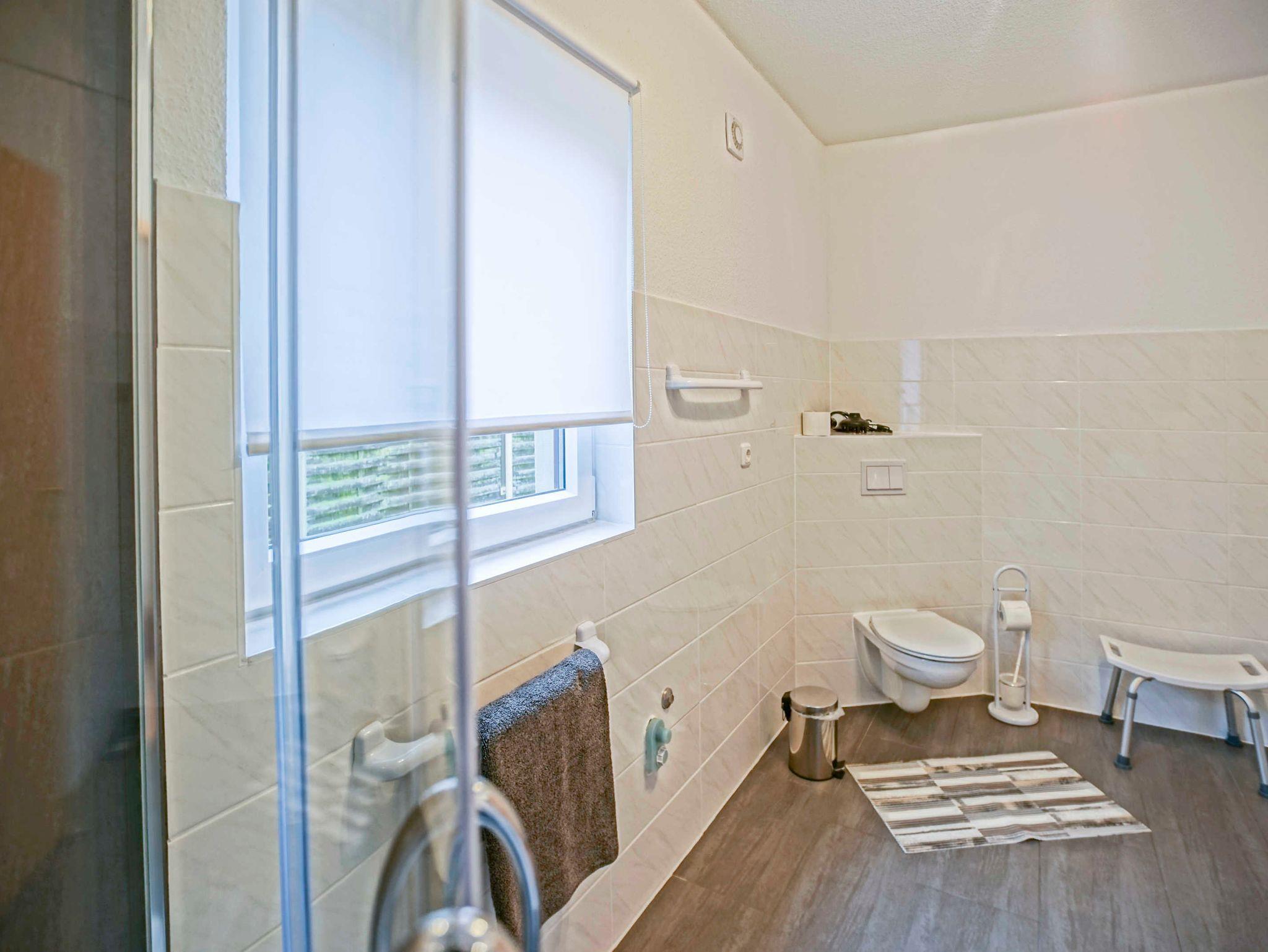 und Handtuchtrockner, sowie ein Badezimmerfenster vorhanden. Geheizt wird die