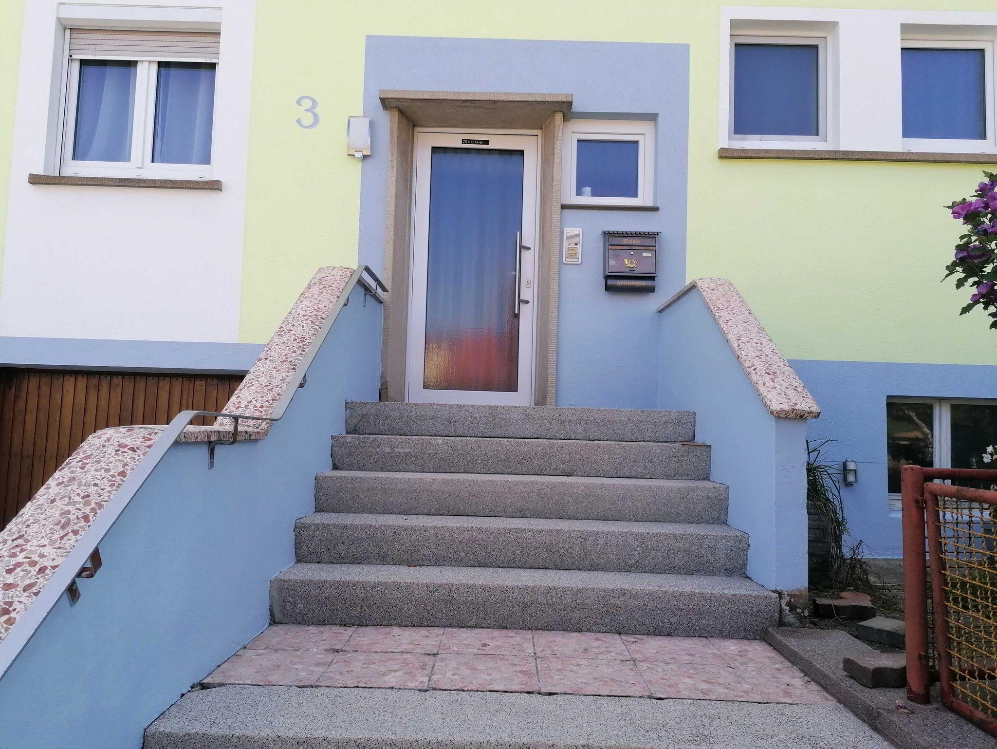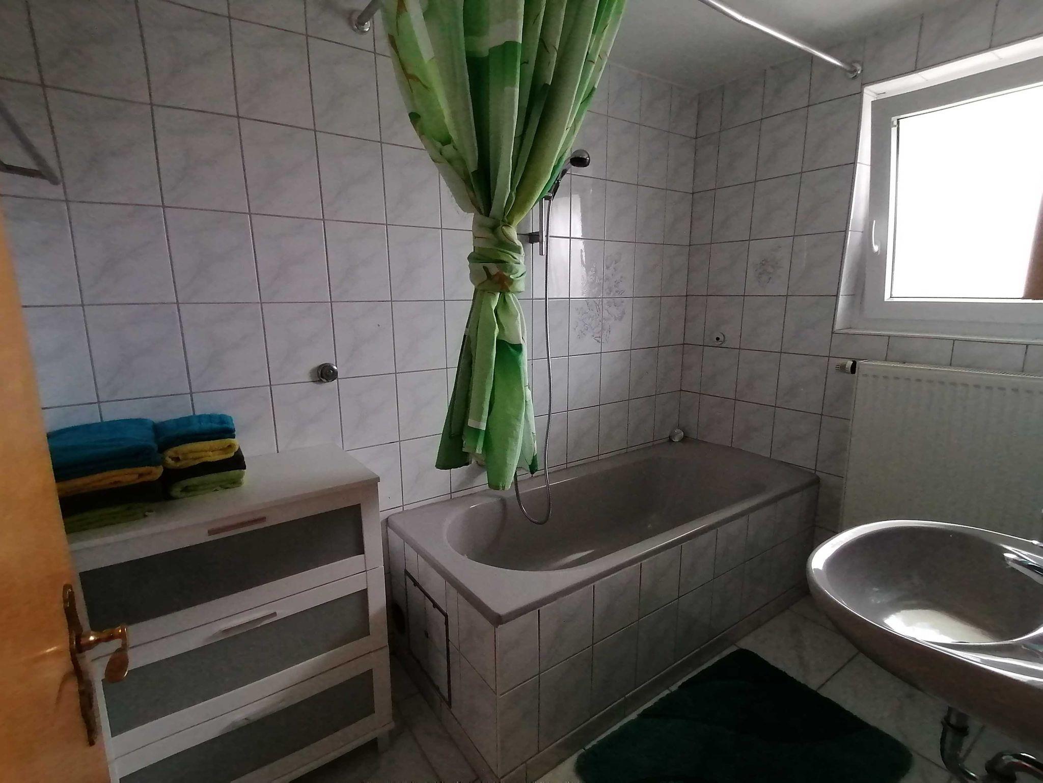 Große Ferienwohnung ca.100 qm, in einem Altbau-Zweifamilienhaus im 1.OG mit Balkon. Wohnzimmer mit Flachbild-TV, Bad, WC, Küche, Esszimmer, Balkon, 3 Schlafzimmer (1x Doppelbett, 2x Einzelbetten als Doppelbett, 2x Einzelbetten). Weitere Schlafmöglichkeit für 2 Personen in mobile Gästebetten möglich, die im Wohnzimmer aufgestellt werden können. Freies WLAN vorhanden. In jedem Zimmer befindet sich ein Fenster mit einem Fliegenschutznetz.