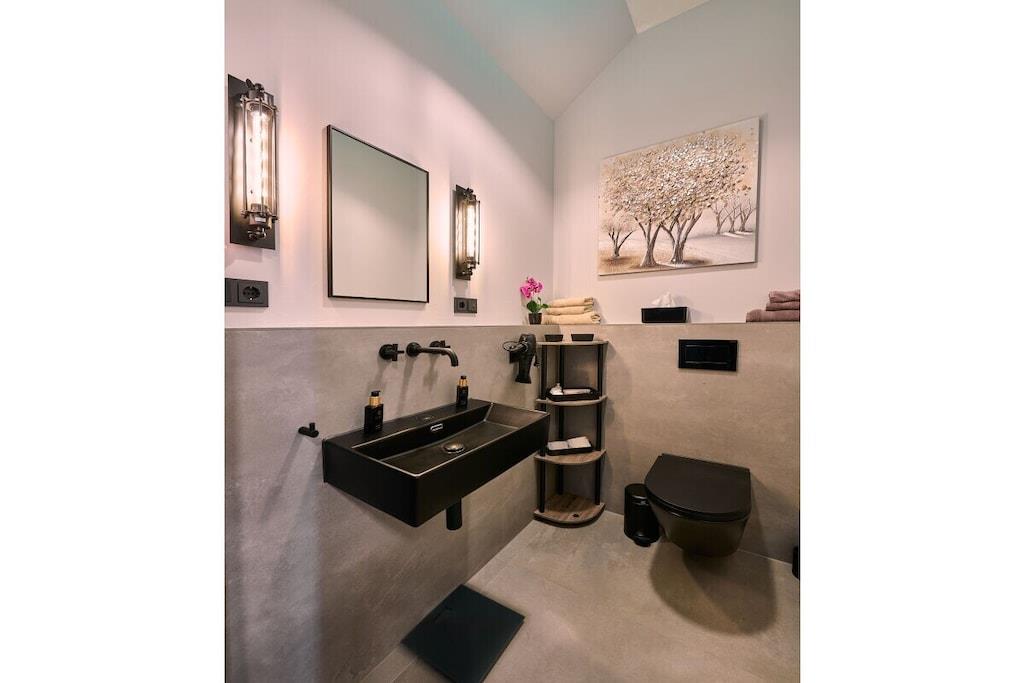 The "Owl's Nest" is our smallest accommodation on the farm. It's located in the center of the converted barn, on the ground floor. This cozy one-room apartment offers 35 square meters of living space with a light-filled living/dining area and access to a large terrace. The apartment includes a kitchenette with a sink, oven, stove, microwave, and mini-dishwasher, providing all the comforts you need. A coffee maker, kettle, and toaster complete the amenities. The round, nest-shaped bed is a real eye-catcher and invites you to dream. Adjacent to the hallway is a separate shower room, and opposite is a bathroom with a toilet and sink. A large flat-screen TV is also standard. On the inviting terrace, you'll find comfortable garden furniture and a charcoal grill. You can also observe the owlets in the neighboring oak trees during the breeding season and their first attempts at flying.