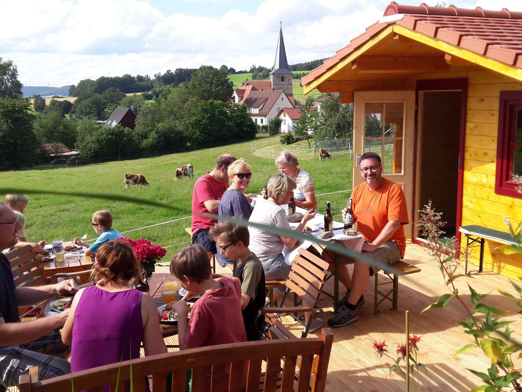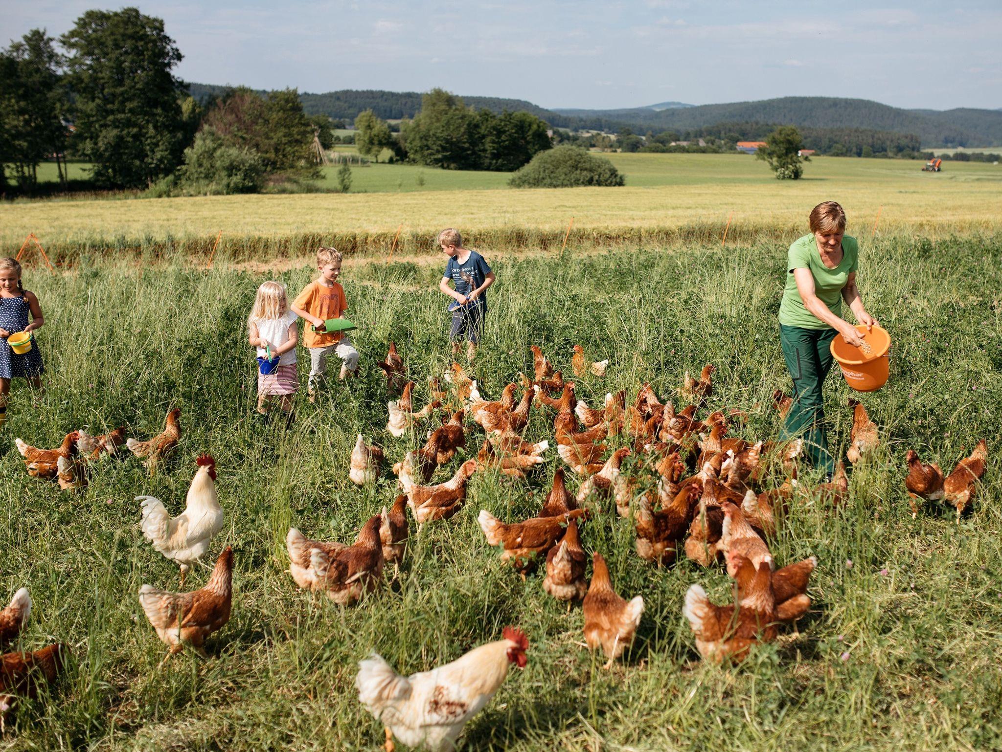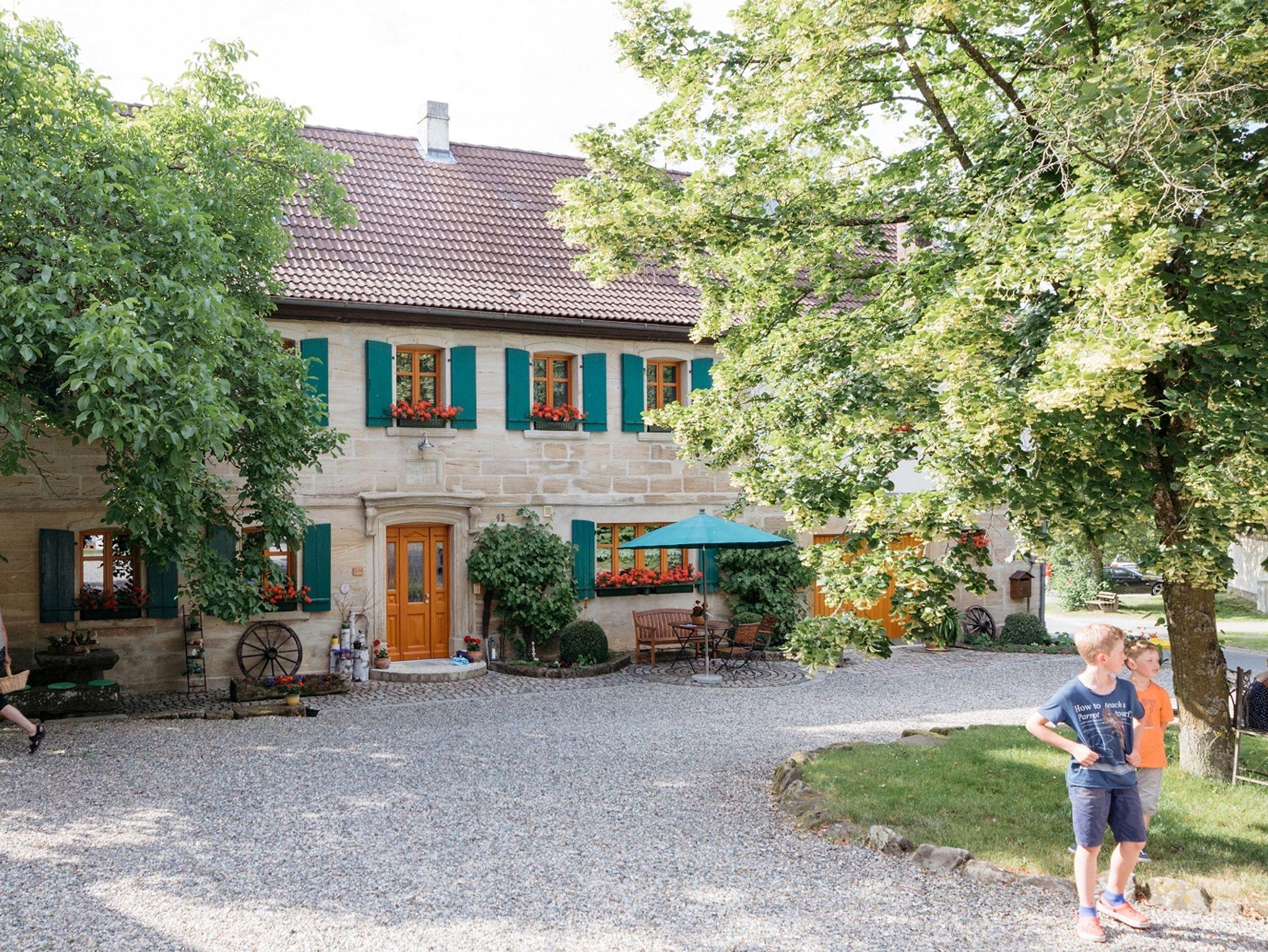 Das Landhaus ist ein altes fränkisches Bauernhaus, das wir liebevoll für Sie renoviert haben. Ursprüngliches wurde bewahrt und mit modernem Ambiente umgeben. Wir bewirtschaften unseren Bauernhof nach Bioland Richtlinien. Neben Rindern auf der Weide, Pferd und Pony, gibt es Ziegen, Hund, Katze und jede Menge Federvieh. Mithilfe der Kinder ist immer herzlich willkommen! In unserem Hofladen können Sie sich rund um die Uhr mit biologischen Grundnahrungsmitteln versorgen. Gerne können Sie sich Ihre Frühstückseier selbst sammeln.