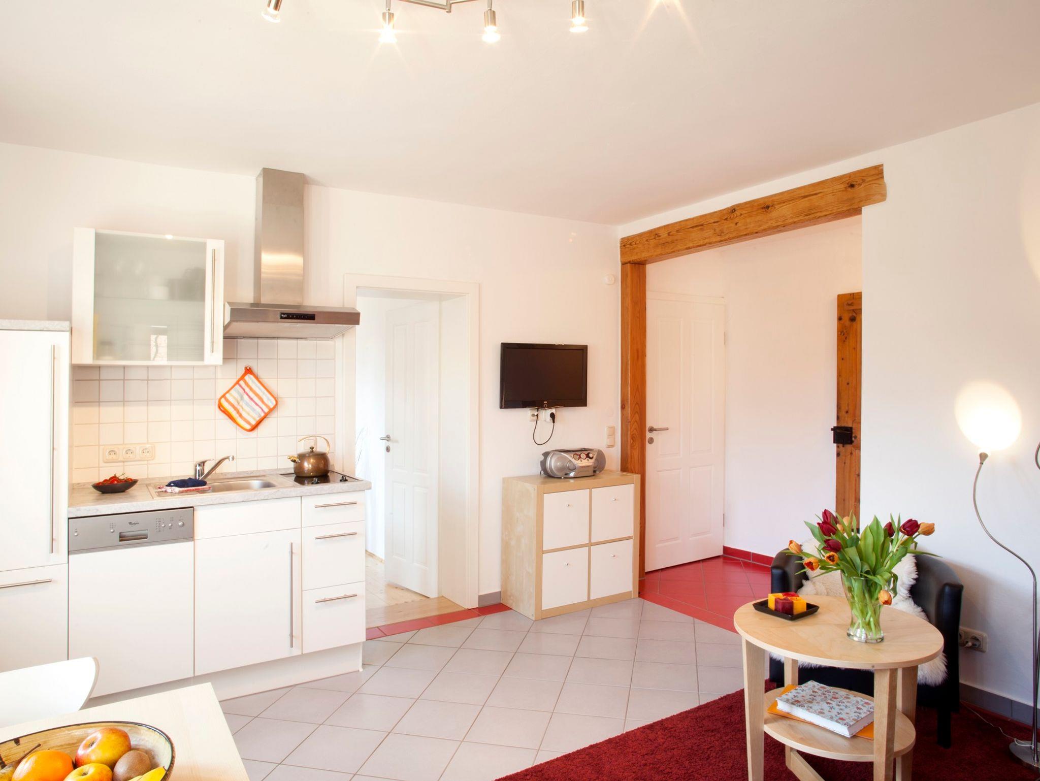 Jedes unserer Apartments ist standardmäßig mit Bett- und Badwäsche ausgestattet. Zudem besitzt jede Wohnung einen Sat-TV und CD-Player. Internet ist heutzutage selbstverständlich. Die Küche ist mit einem Herd, zum Teil auch einem Backofen versehen. Des Weiteren befinden sich dort Kühlschrank, Spülmaschine, Kaffeemaschine, Wasserkocher, Mikrowelle usw. Jedes Apartment ist mit einem Badezimmer mit Dusche und WC ausgestattet.