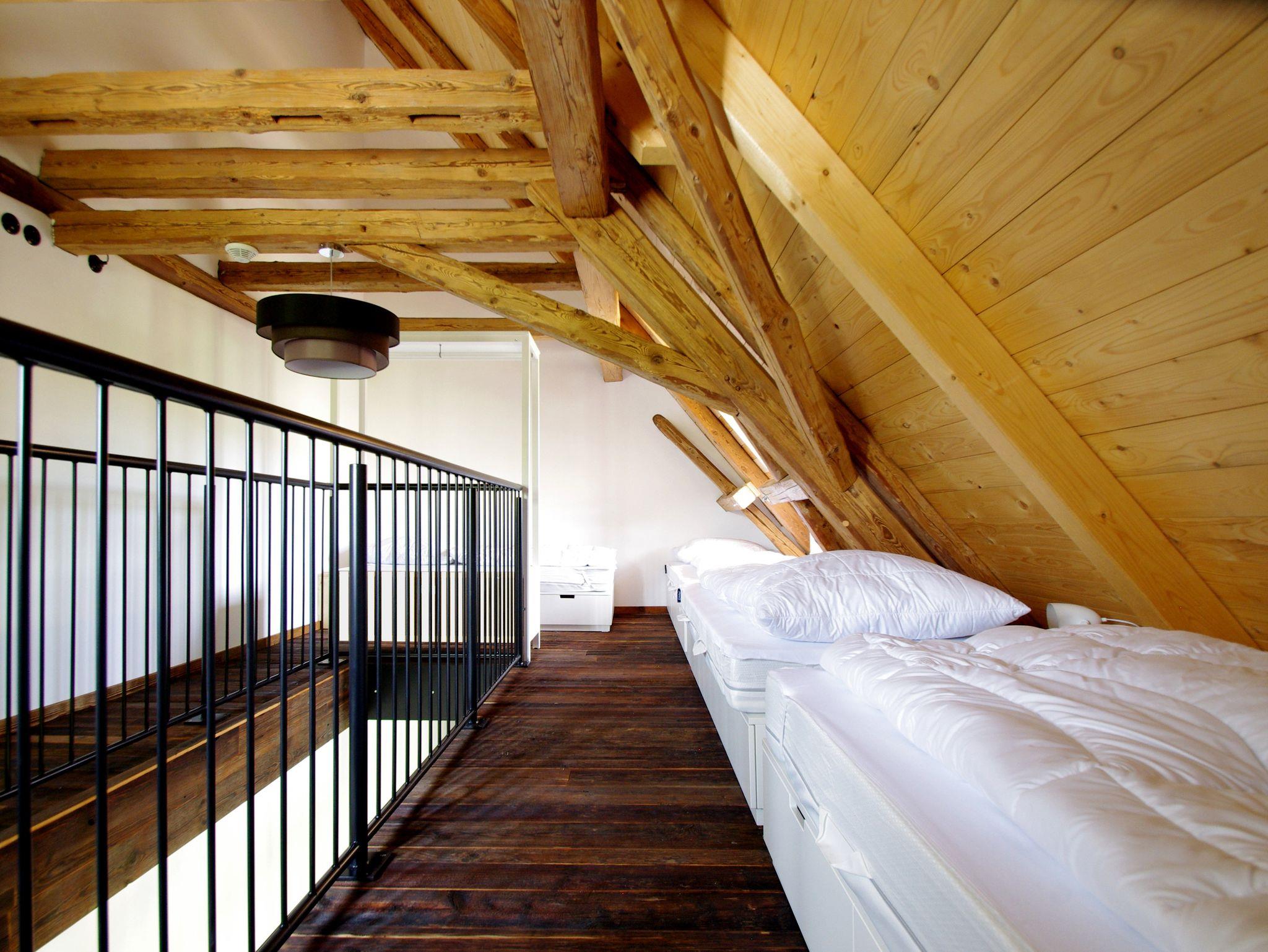 Unsere Ferienwohnung mit rund 70 Quadratmetern bieten Platz für jeweils sechs Personen. Beide haben ein Schlafzimmer für zwei Personen sowie vier Betten im ausgebauten Dachboden. Zur Ausstattung gehören eine Küchenzeile mit Essecke, Wohnbereich mit Fernseher, Internetanschluss und Bad.