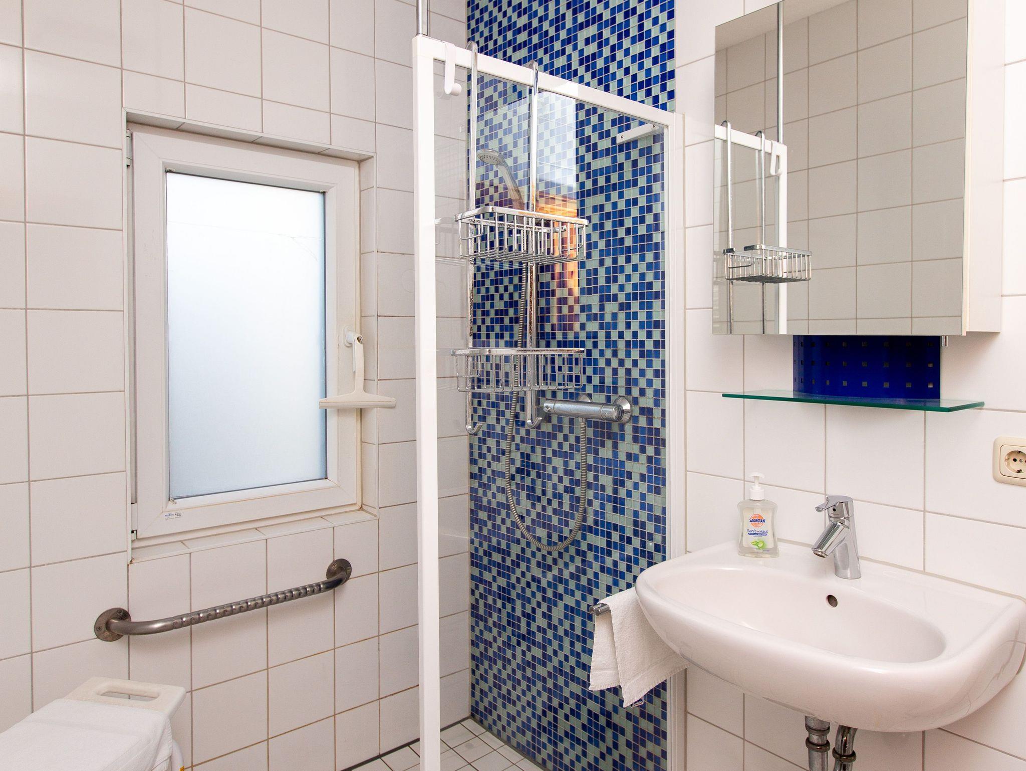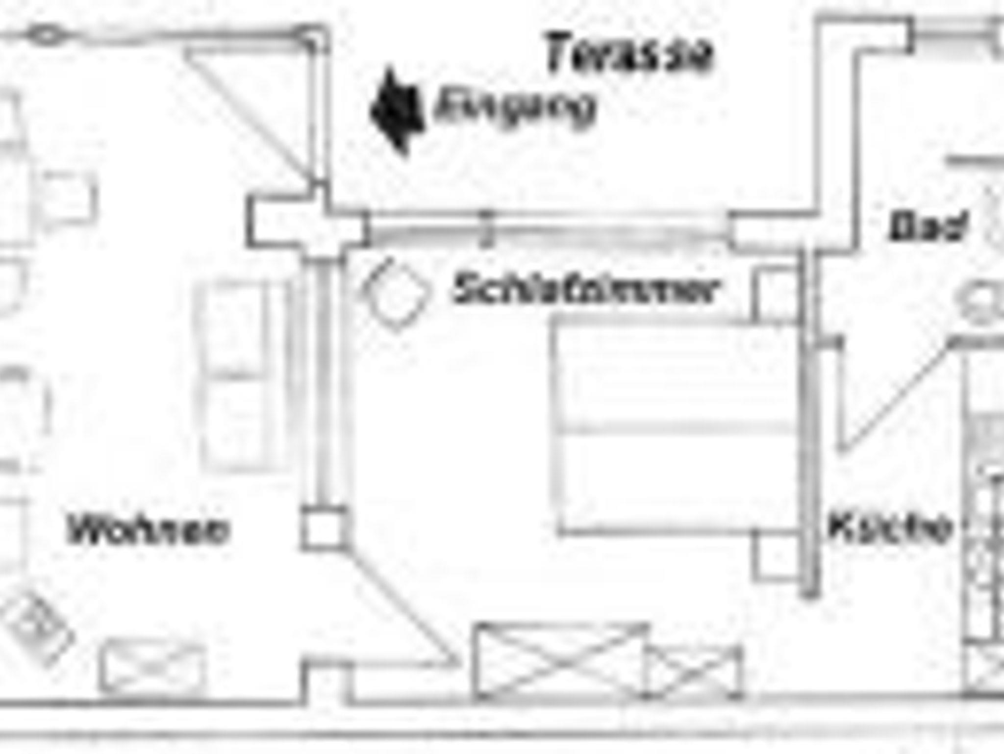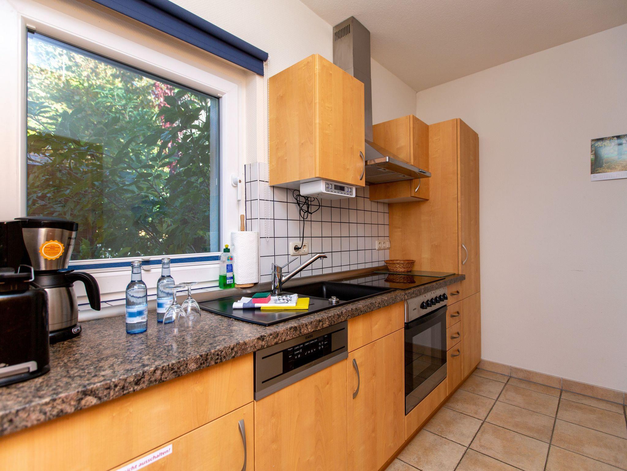 Er ist barrierefrei angelegt, komplett fußbodenbeheizt und hat im Wohnbereich einen Kaminofen. Die Küche mit allen modernen Küchengeräten und das Bad mit Dusche und WC sind rollstuhlgerecht eingerichtet.