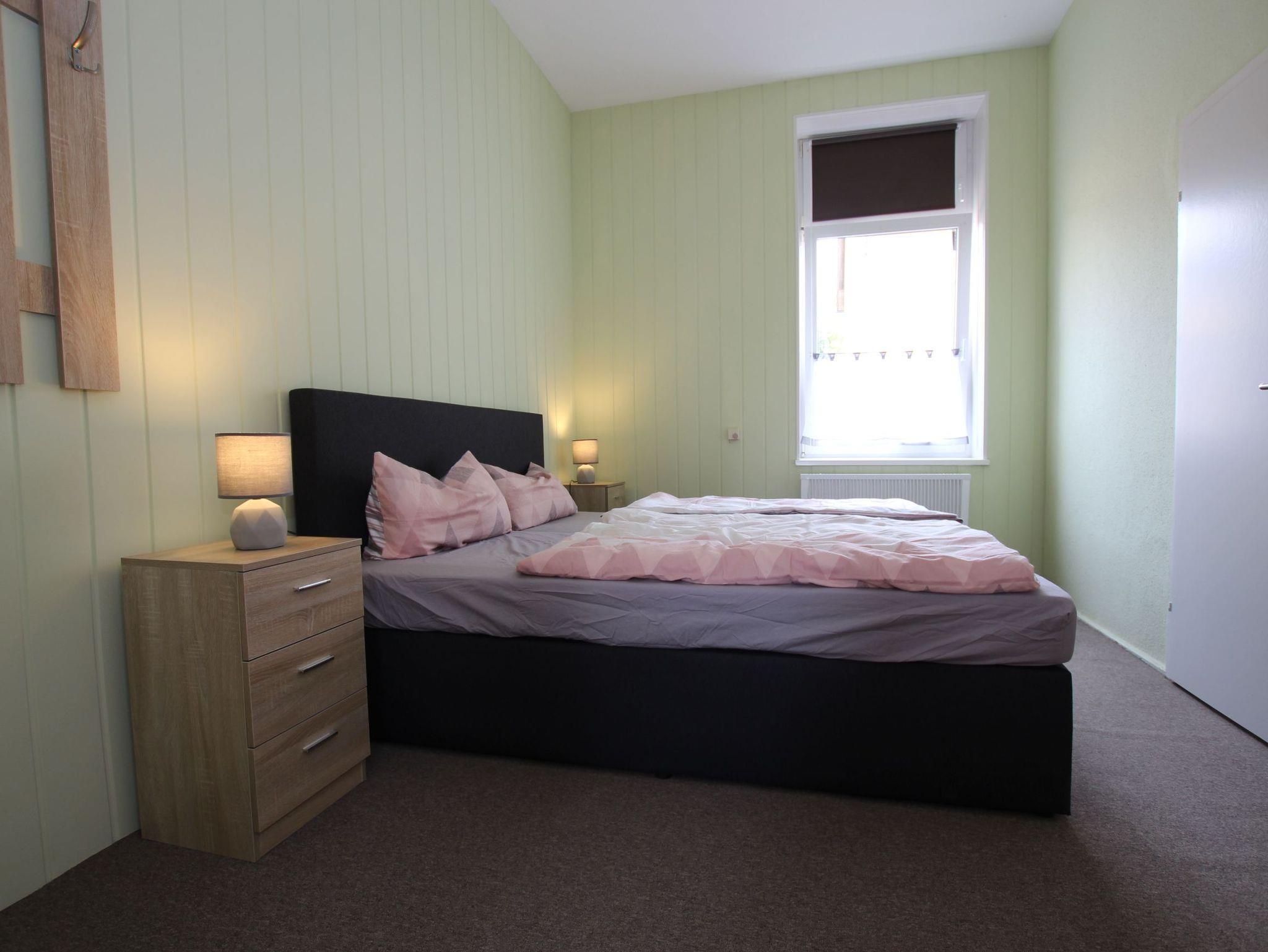 Die Ferienwohnung befindet sich in einem Haus mit 3 Wohnungen im Erdgeschoss und hat eine Größe von 40 m². Der gemütlich eingerichtete Wohnraum mit Sofaecke (Aufbettung für 3. Person), Couchtisch, TV, Radio, CD-Spieler und Esstisch mit Stühlen lädt zum Verweilen ein. Die Küche ist zum Wohnzimmer offen und modern ausgestattet mit Cerankochfeld, Backofen, Mikrowelle, Toaster, Wasserkocher, Kaffeemaschine und Kleinutensilien. Das Bad ist gefliest und mit einer Dusche, Waschtisch und WC ausgestattet. Im separaten Schlafzimmer mit dem Boxspringbett (1,80 m x 2,00 m), Nachttischen und dem Kleiderschrank finden Sie Nachtruhe. WLAN ist vorhanden. Im umzäunten Innenhof befindet sich eine Sitzecke mit Gartenmöbeln, Sonnenschirm und Grill. Diese Sitzecke wird gemeinschaftlich genutzt mit anderen Gästen des Hauses. Für wohlige Wärme sorgt eine Speicherheizung, die über ein Thermostat regelbar ist. Heizung/Strom werden nach Verbrauch berechnet.