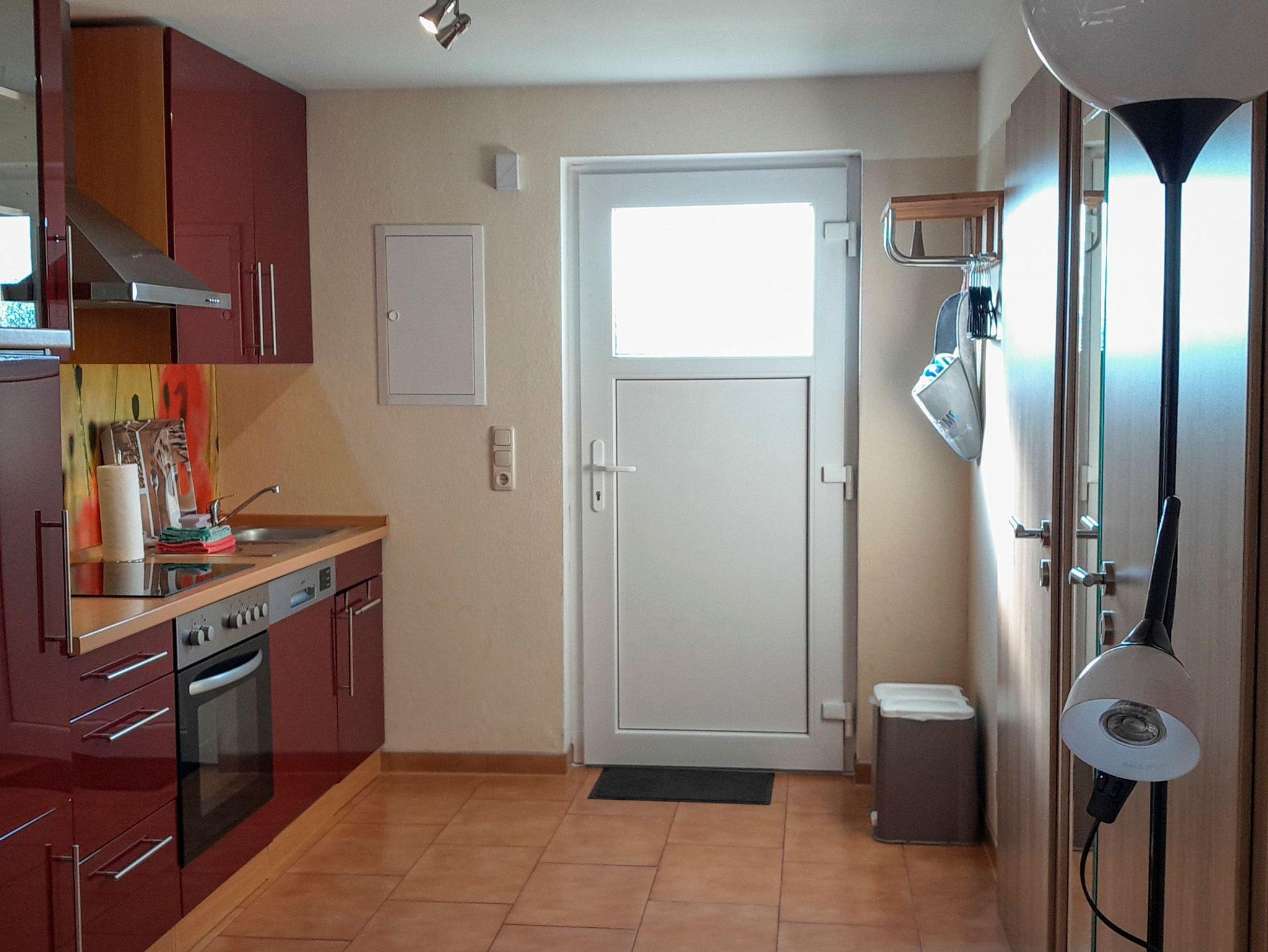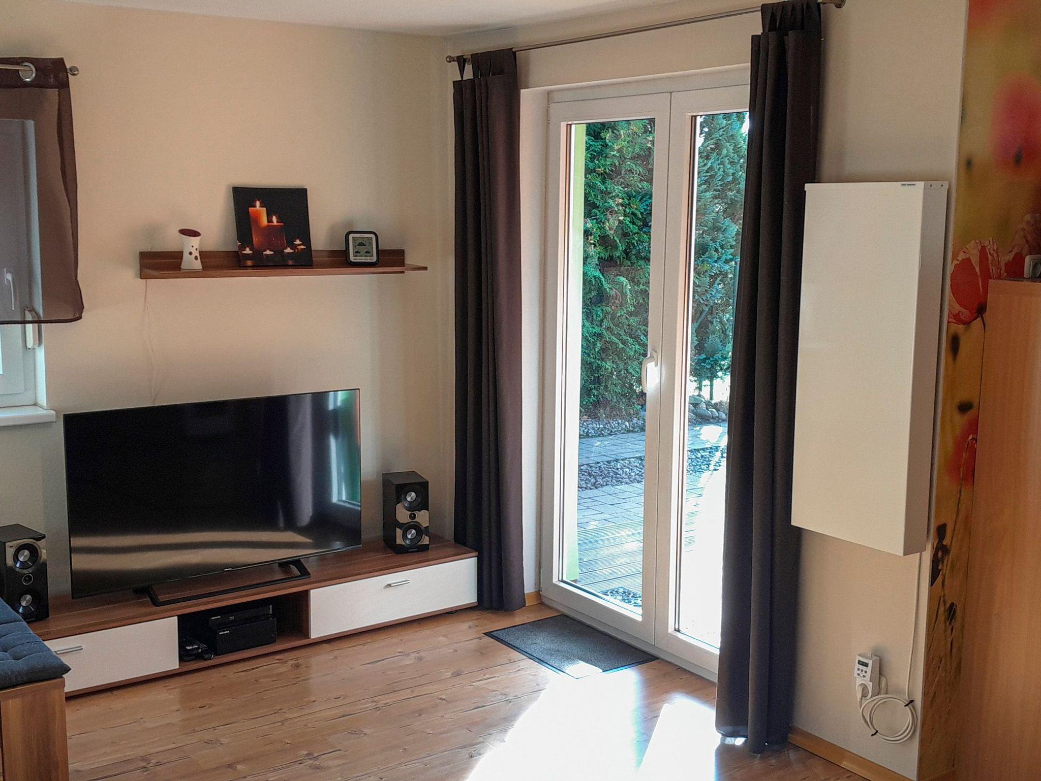 Das gemütliche Ferienhaus ist mit seinen 45m² befindet sich auf einem abgegrenzten separaten Teil des Grundstücks des Vermieters. Es gibt eine eigene Auffahrt über einen Feldweg. Das Grundstück befindet sich in einer ruhigen Stadtrandsiedlung angrenzend an Feld und Wald.