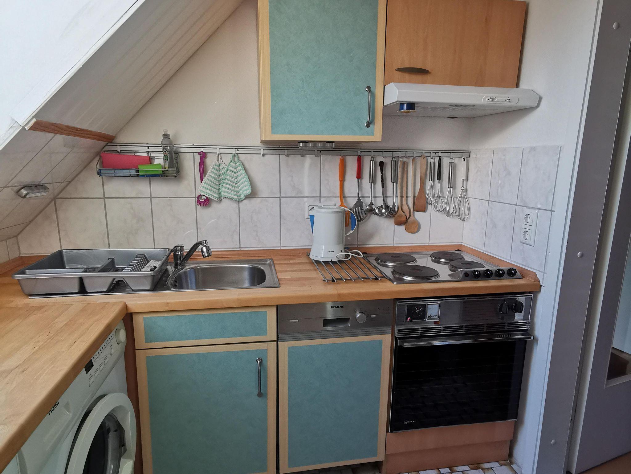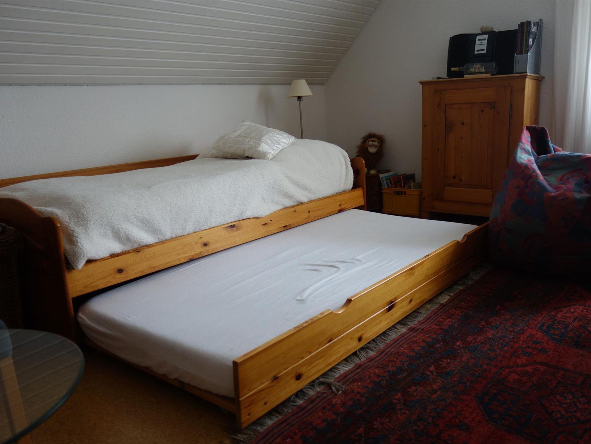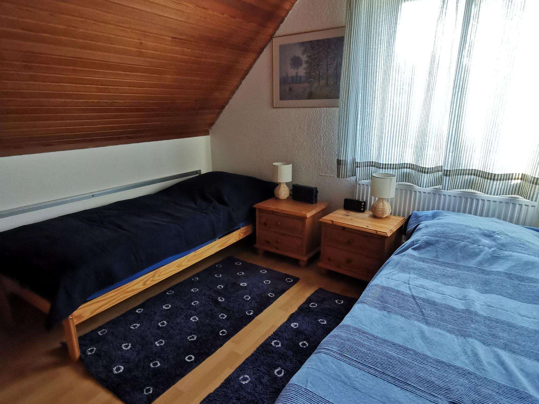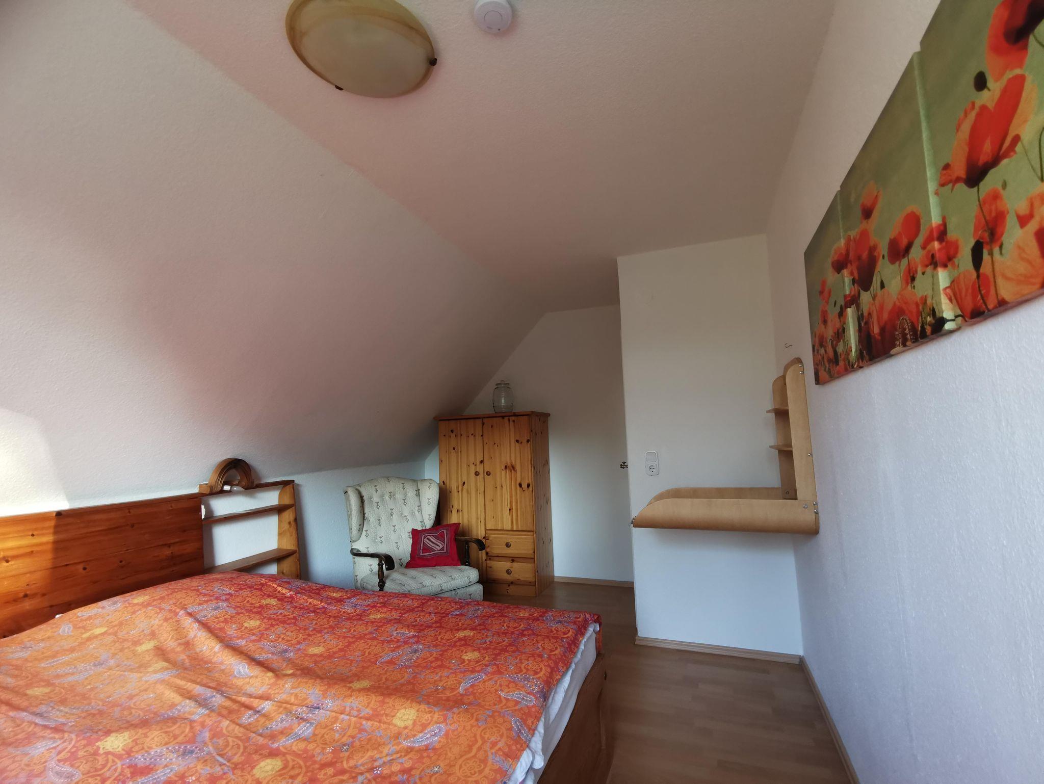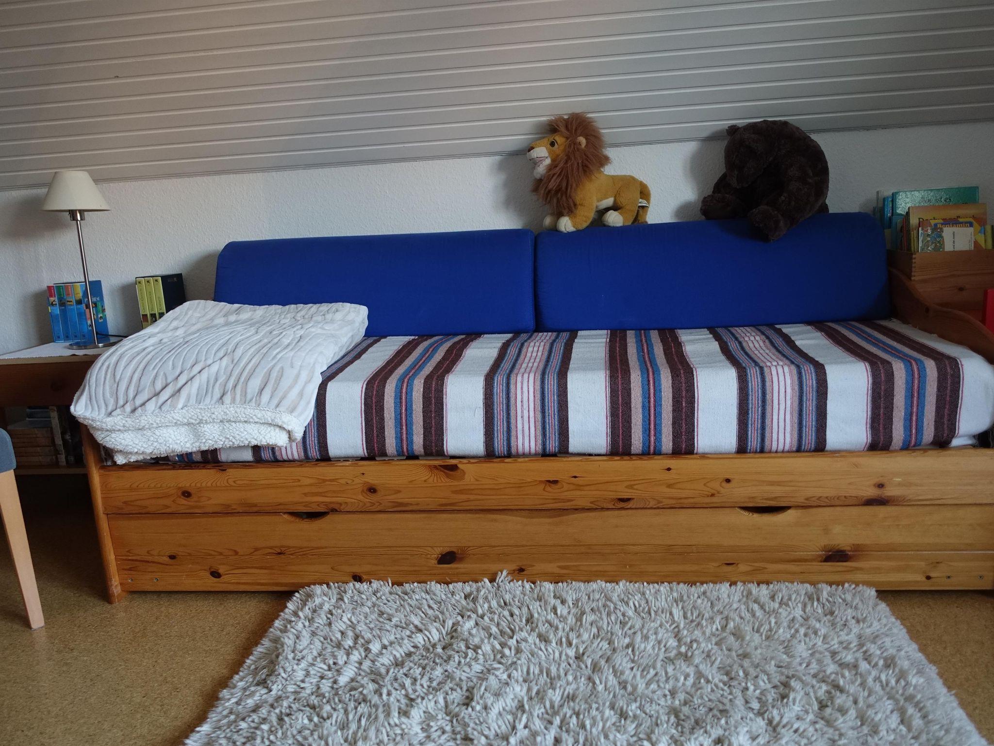In der Ferienwohnung befinden sich zwei Schlafzimmer (1 Doppelzimmer, 1 Zweibettzimmer), sowie ein großes Wohnzimmer mit Spielecke und zwei weiteren Schlafmöglichkeiten (Sofabett mit zusätzlich ausziehbarer Bettschublade), eine Essdiele, eine separate, gut ausgestattete Küche mit Spül- und Waschmaschine sowie ein Duschbad mit Badewanne.